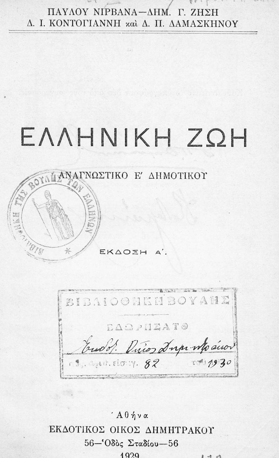 Εκδότης: Δημητράκος Α. Ε. Έτος έκδοσης: 1929 Τόπος έκδοσης: Αθήνα Έκδοση: 1η |