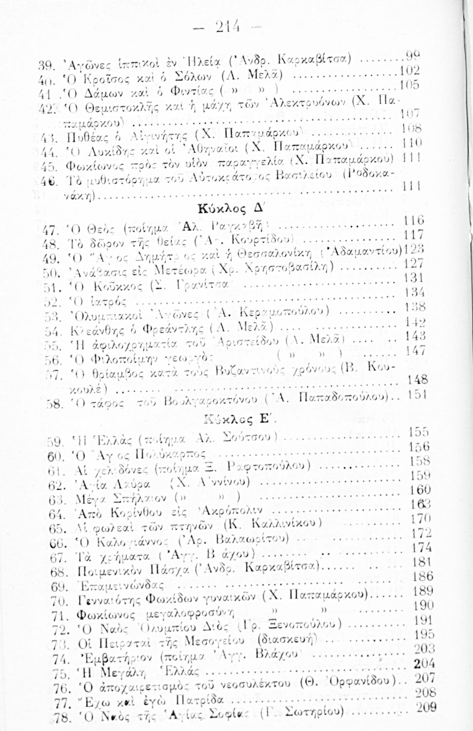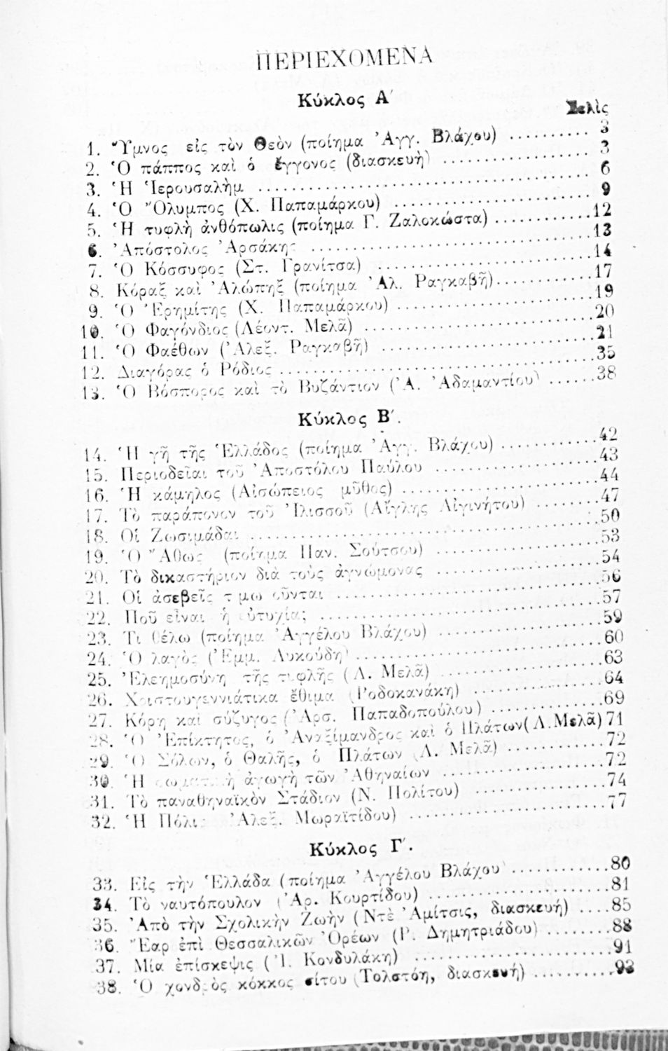 Αναγνωστικό Ε΄ Δημοτικού που περιέχει πεζά και ποιήματα εμπνευσμένα από τη θρησκευτική, εθνική, κοινωνική ζωή καθώς και από τις ασχολίες των Ελλήνων, την αρχαία και σύγχρονη ελληνική ιστορία και τον πολιτισμό.