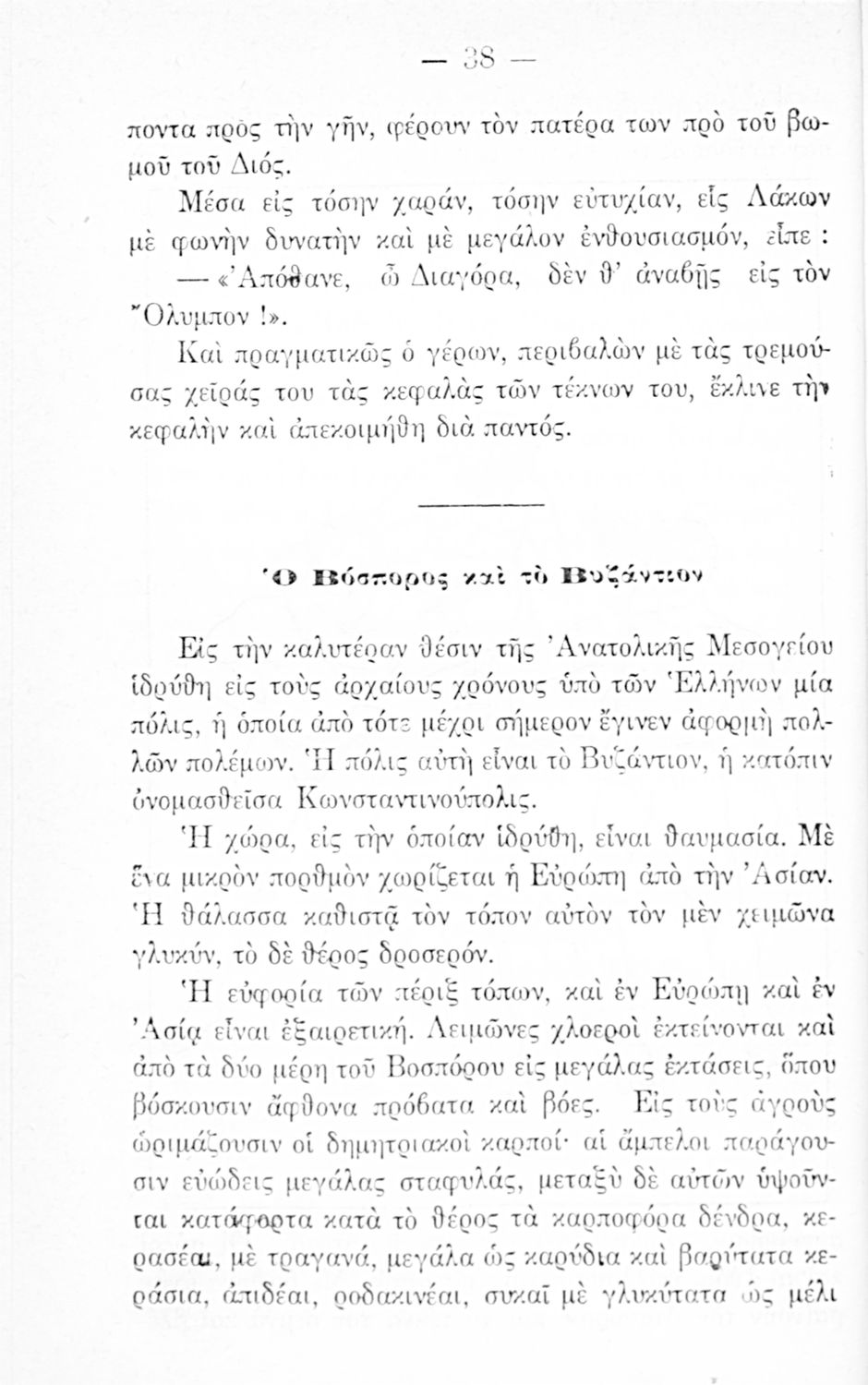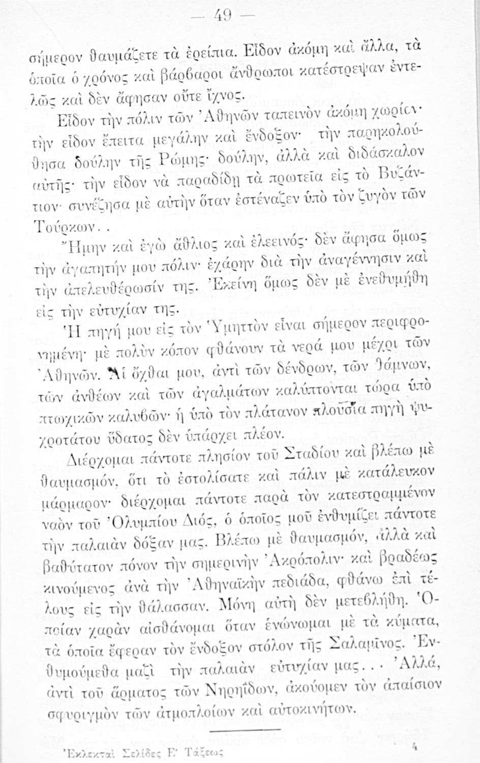 Βαθμίδα εκπαίδευσης: Πρωτοβάθμια Τάξη: Ε' Δημοτικού Μάθημα: Νέα Ελληνικά Γλώσσα: Απλή καθαρεύουσα Παρουσίαση περιεχομένου: Αναγνωστικό Ε΄ Δημοτικού που περιλαμβάνει ποιήματα και πεζά που αντλούν τα θέματά τους από την αρχαία και σύγχρονη ελληνική ιστορία, την ελληνική μυθολογία, τη βυζαντινή ιστορία, τη θρησκεία και την καθημερινή ζωή των ανθρώπων. |