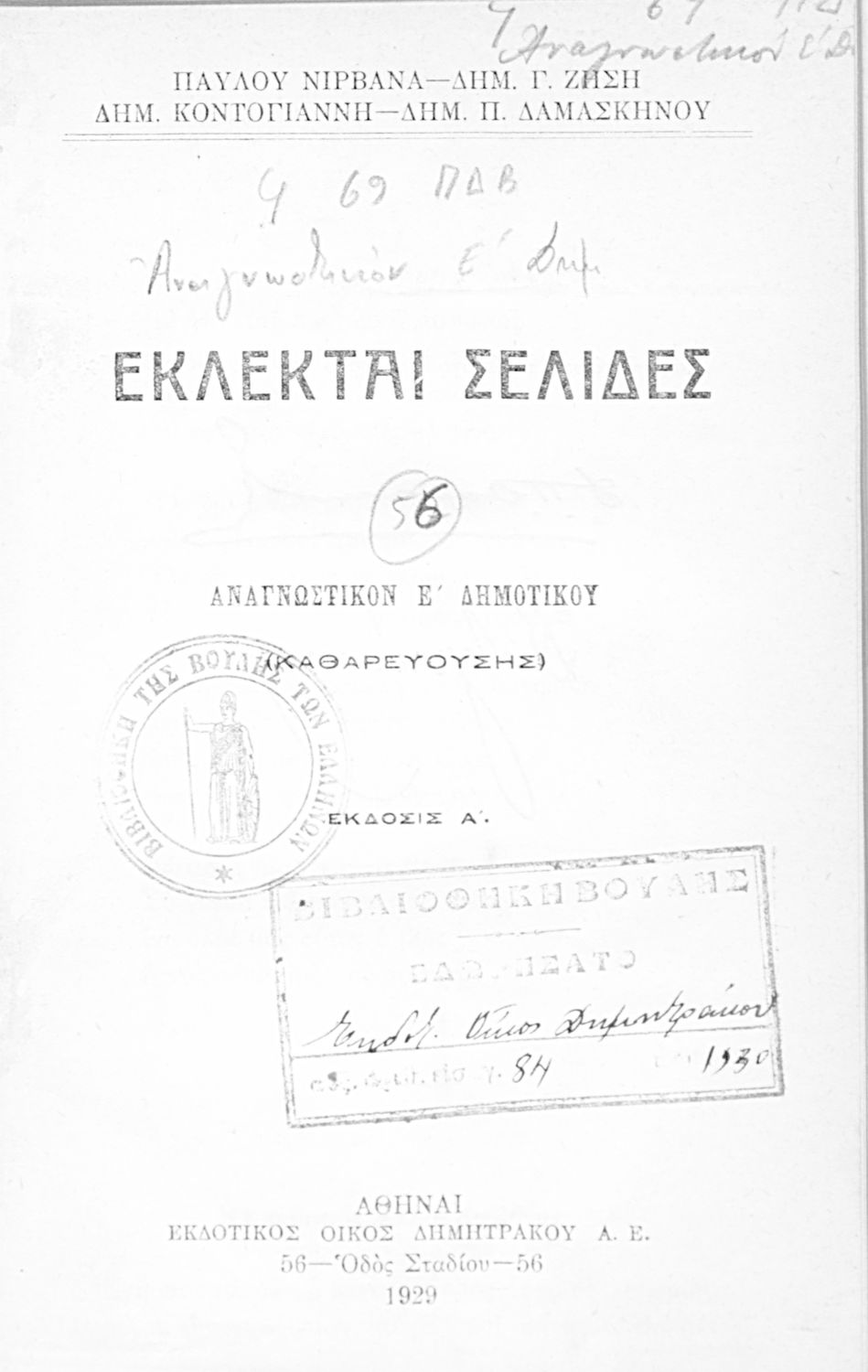 Εντοπισμός πρωτοτύπου: Βιβλιοθήκη της Βουλής των Ελλήνων