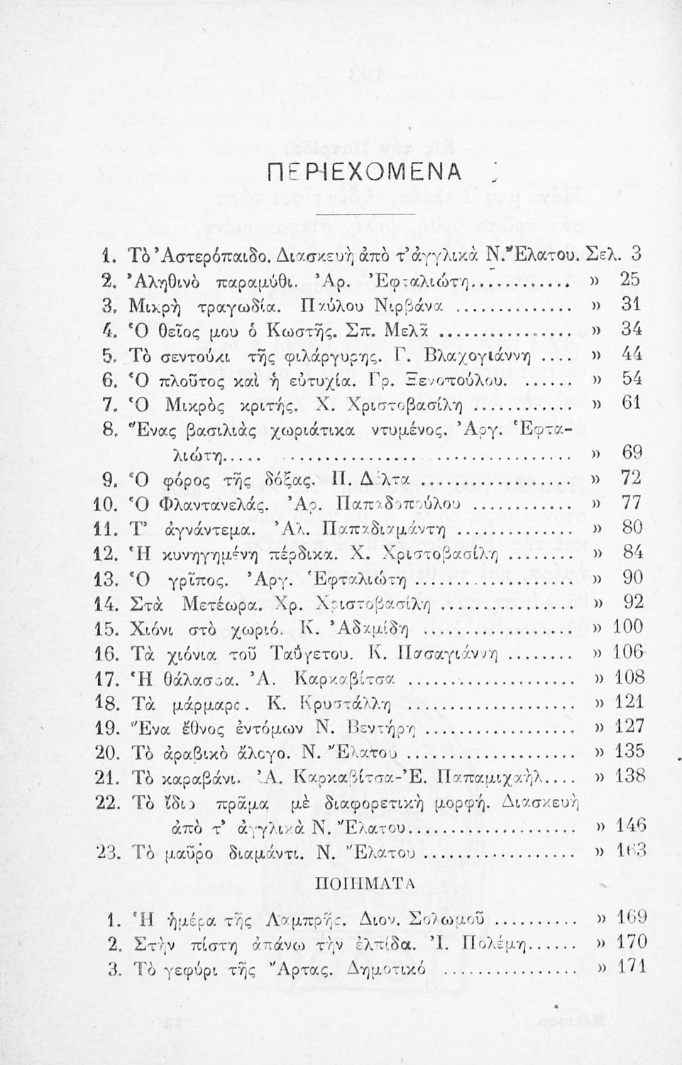 Αναγνωστικό Ε΄ Δημοτικού που περιέχει πεζά και ποιήματα εμπνευσμένα από τη θρησκευτική, εθνική, κοινωνική ζωή καθώς και από τις ασχολίες των Ελλήνων, την αρχαία και σύγχρονη ελληνική ιστορία και τον πολιτισμό.