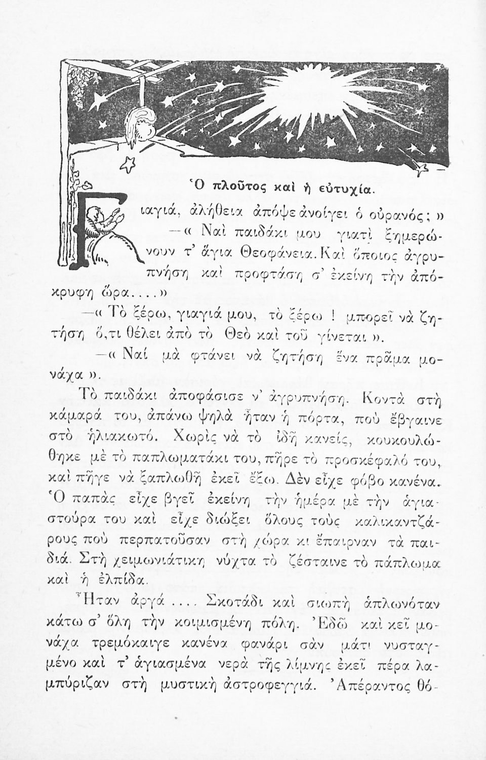 Αναγνωστικό Ε΄ Δημοτικού που περιέχει κείμενα εμπνευσμένα από την εθνική, κοινωνική και οικογενειακή ζωή και την ελληνική φύση, μυθολογία και ιστορία.