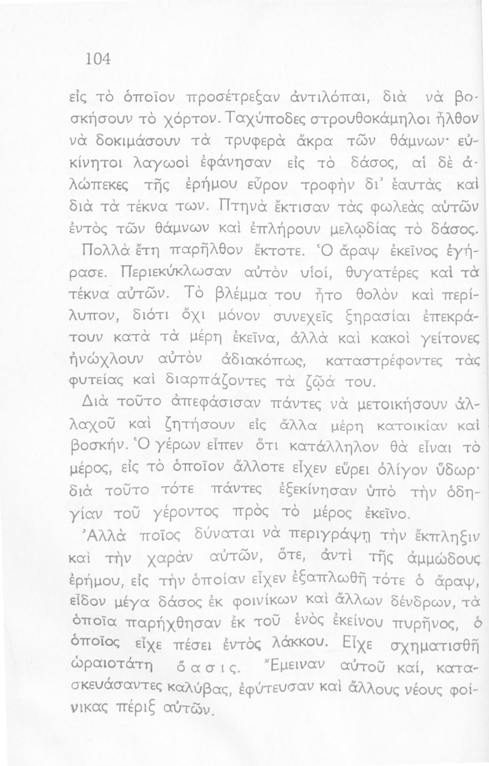Αναγνωστικό ΣΤ΄ Δημοτικού που περιλαμβάνει πεζά γραμμένα σε καθαρεύουσα και ποιήματα σε δημοτική εμπνευσμένα από την οικογένεια, τη θρησκεία, την πατρίδα, την ελληνική φύση και ύπαιθρο, την αγάπη για τα ζώα, ...