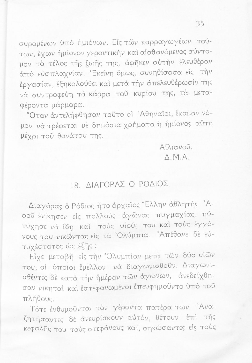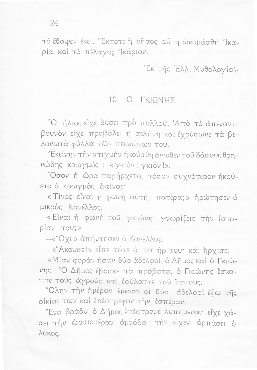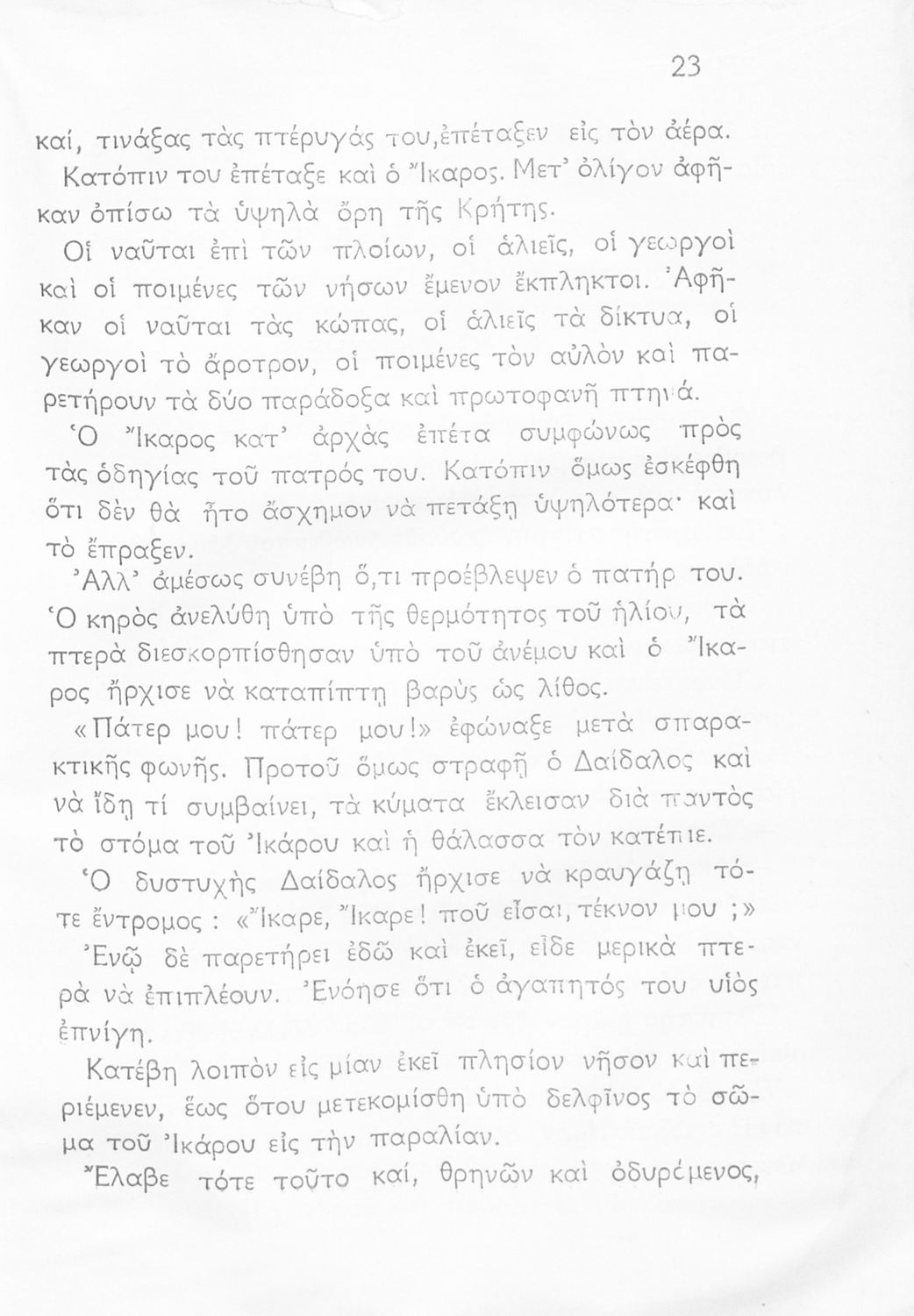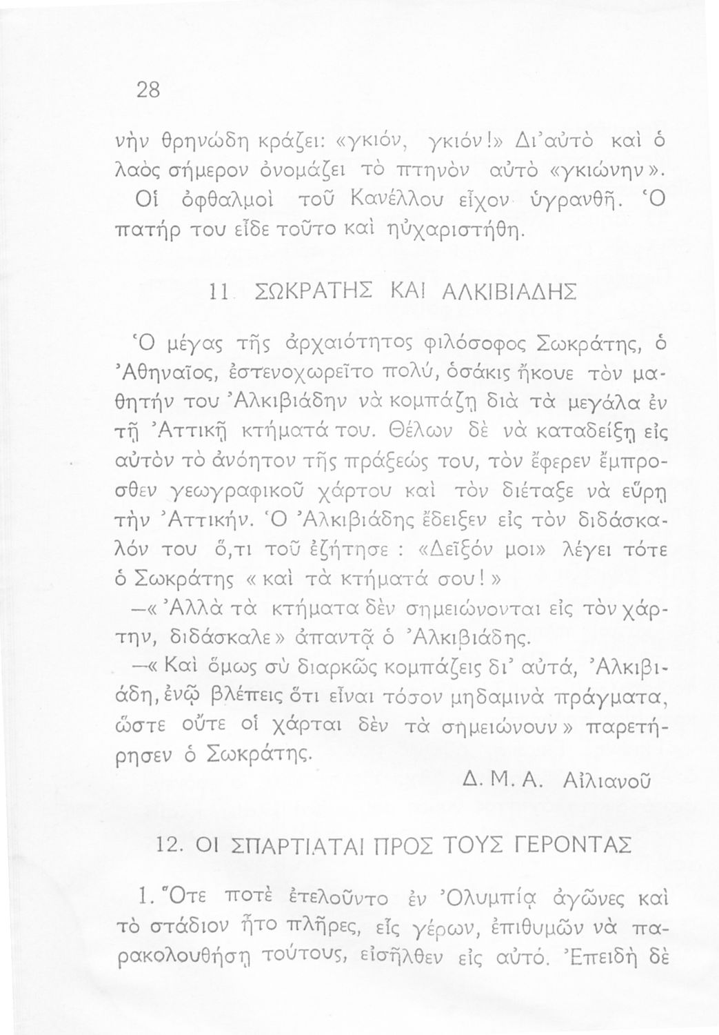 Αναγνωστικό ΣΤ΄ Δημοτικού που περιλαμβάνει πεζά και ποιήματα από την ελληνική μυθολογία, την ιστορική παράδοση, τις ηθικές αρετές και αξίες, και τη θρησκευτική παράδοση.