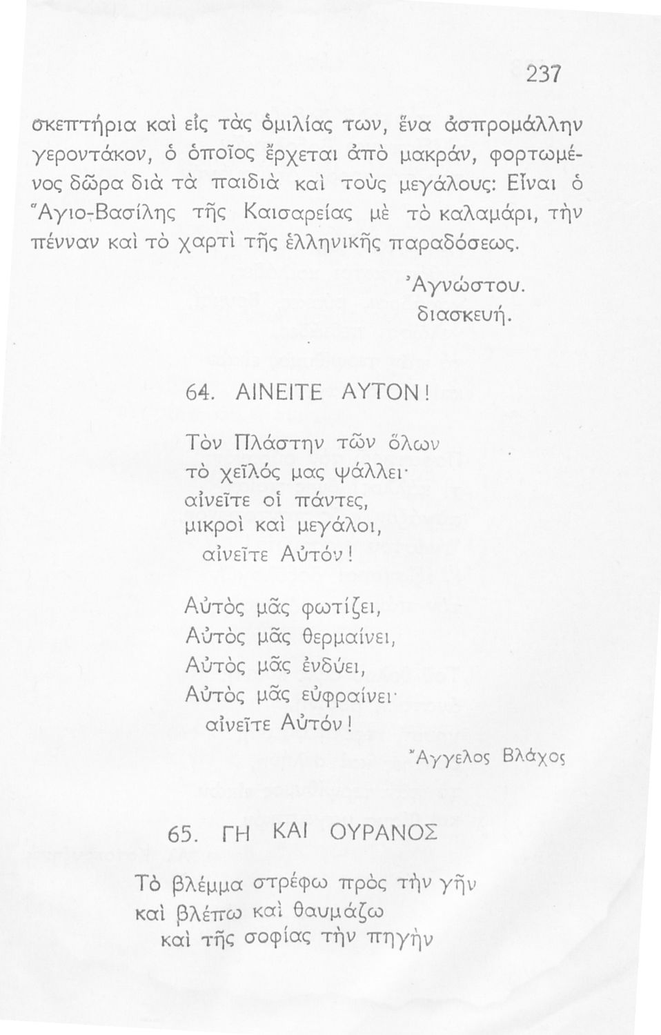Αναγνωστικό Ε' Δημοτικού που περιλαμβάνει ποιήματα και πεζά με θέματα από την ελληνική φύση, τη θρησκεία και την αρχαία ελληνική και βυζαντινή ιστορία.