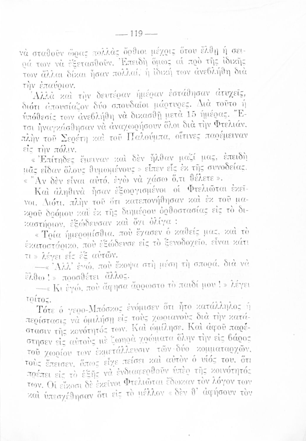 Ευαγ. Π. Φωτιάδης, Ηλίας Π. Μηνιάτης, Γ. Μέγας, Δ. Οικονομίδης, Θ. Παρασκευόπουλος, Π. Νιρβάνας, Δ. Ζήσης, Ι. Συκώκης, Κ. Πασαγιάννης, Π. Δημητράτος, Α. Στρατηγόπουλος