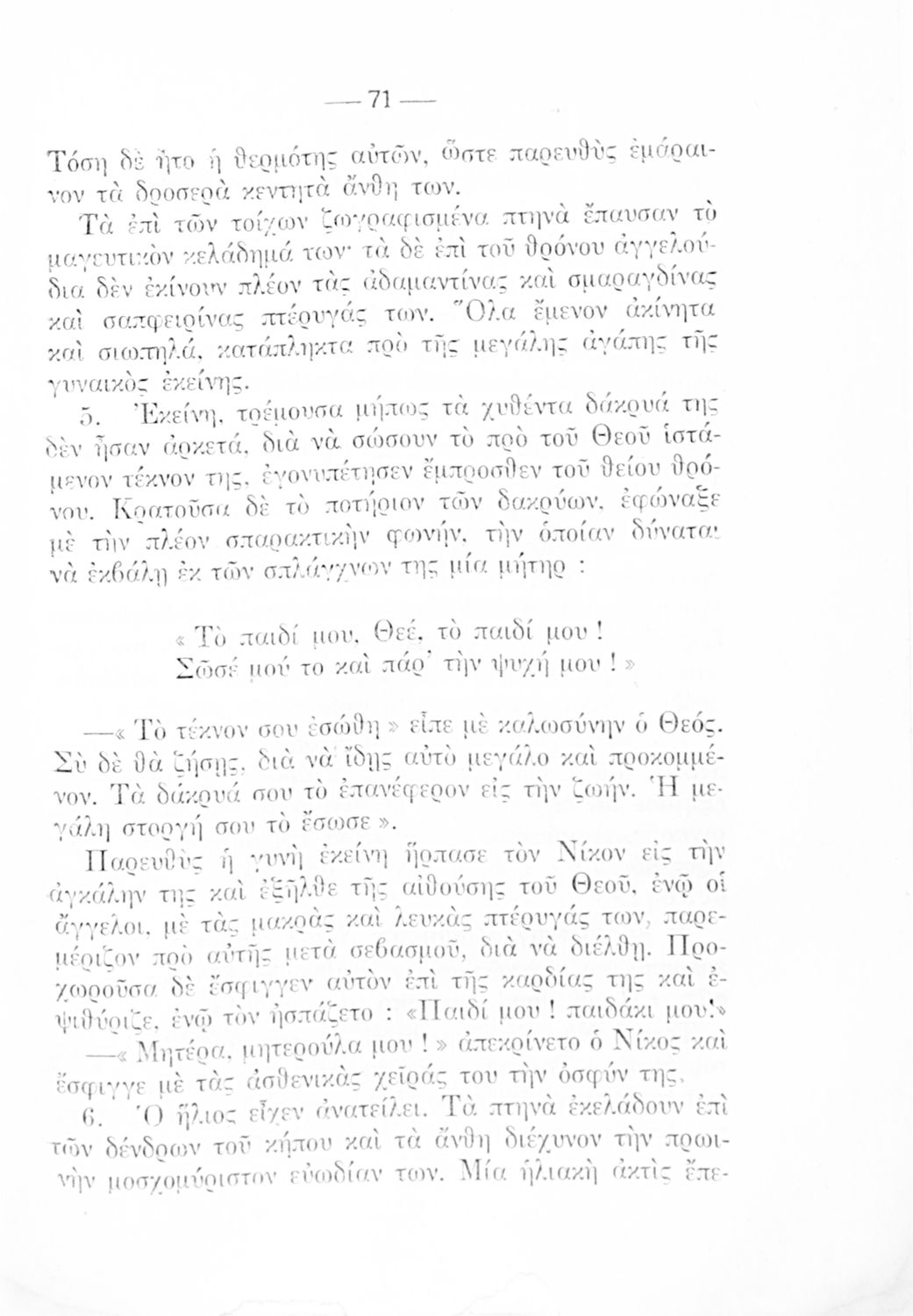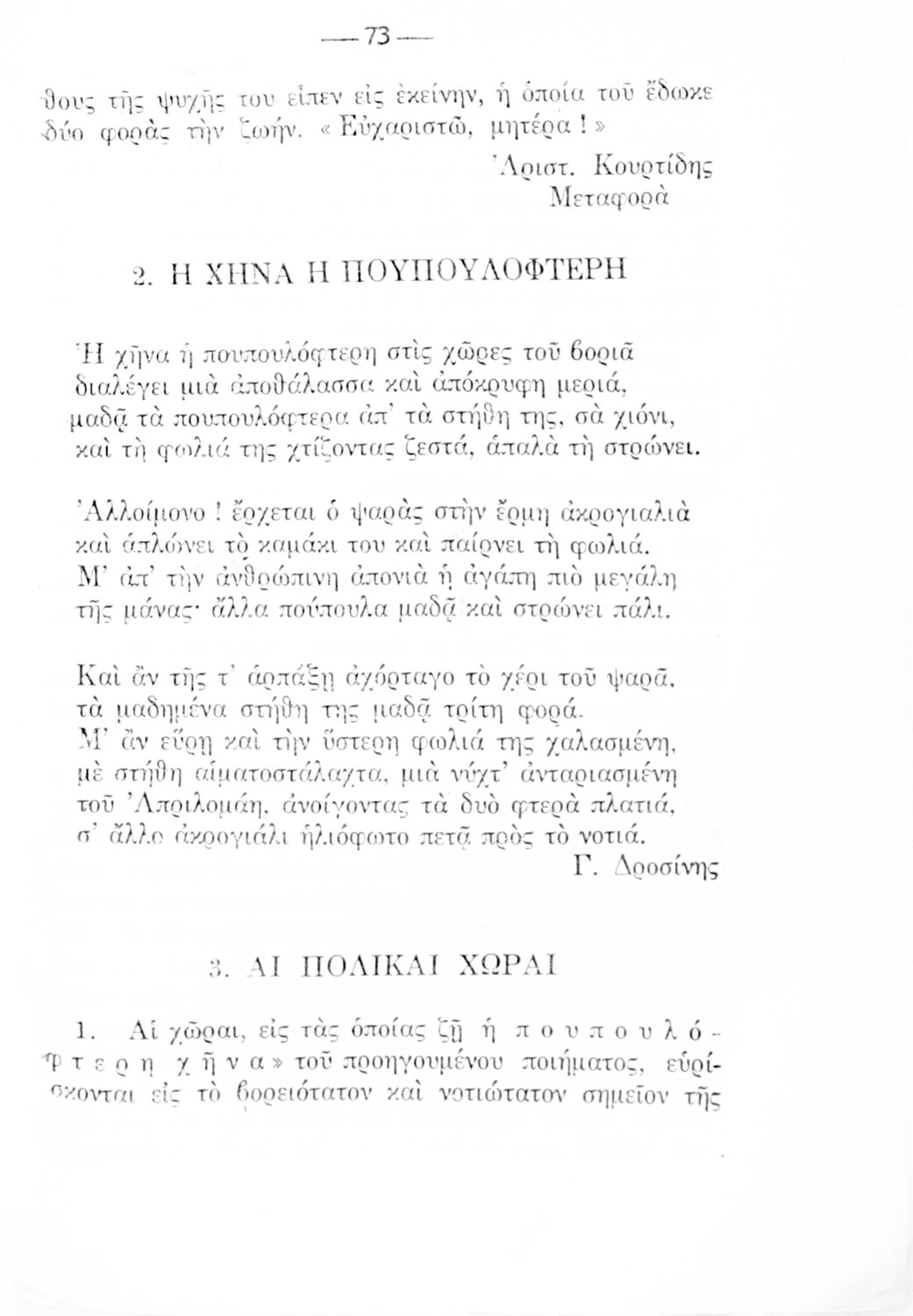 Αναγνωστικό ΣΤ΄ Δημοτικού που περιλαμβάνει πεζά και ποιήματα εμπνευσμένα από τη θρησκευτική, εθνική και κοινωνική ζωή καθώς και από τις ασχολίες των Ελλήνων.