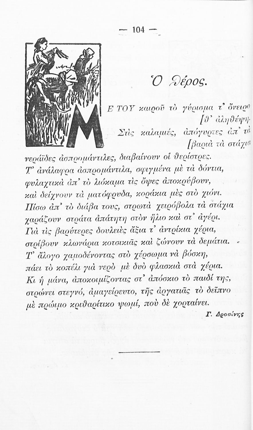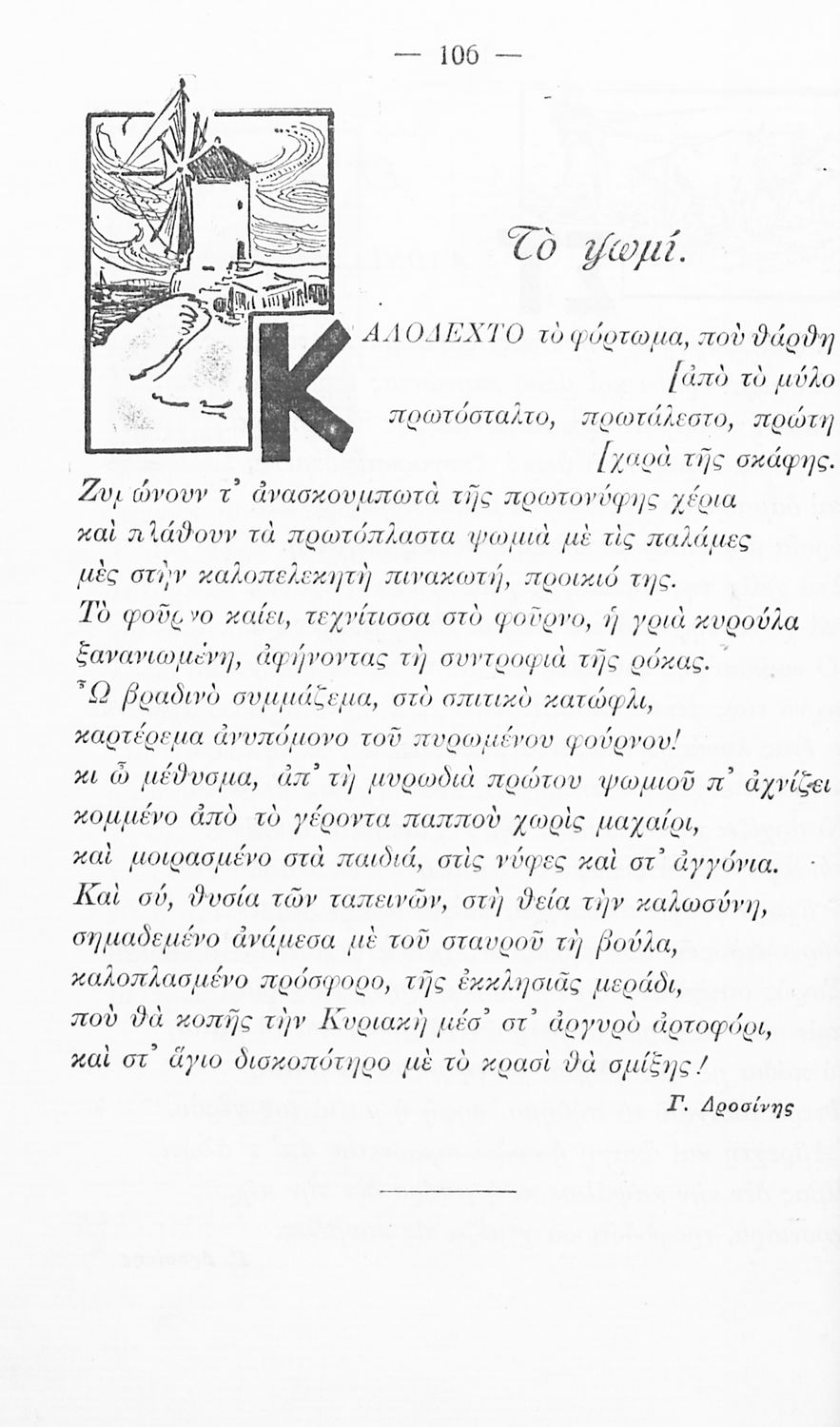 Αναγνωστικό ΣΤ΄ Δημοτικού που περιλαμβάνει ποιήματα και πεζά που αντλούν τα θέματά τους από την καθημερινή ζωή των ανθρώπων και τη σύγχρονη ελληνική ιστορία.