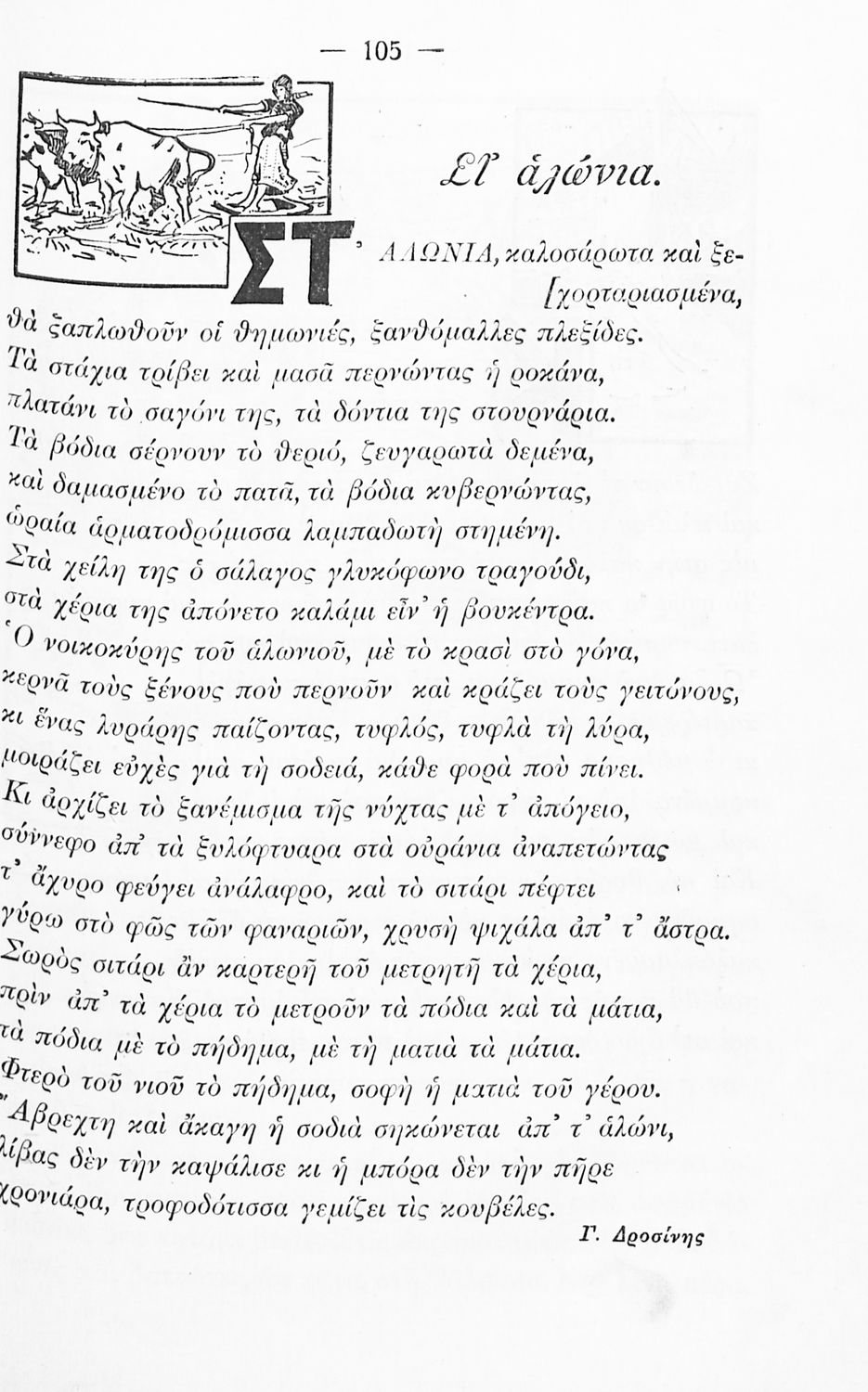 Αναγνωστικό Δ΄ Δημοτικού που περιλαμβάνει κείμενα εμπνευσμένα από την ελληνική μυθολογία, την ελληνική γη, τη χλωρίδα και την πανίδα της Ελλάδας και τις διαπροσωπικές σχέσεις.
