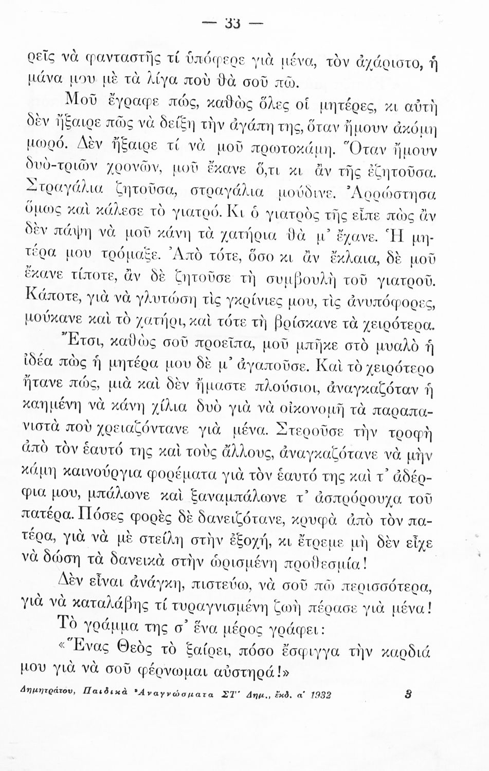 Αναγνωστικό Δ΄ Δημοτικού που περιλαμβάνει κείμενα εμπνευσμένα από την ελληνική μυθολογία, την ελληνική γη, τη χλωρίδα και την πανίδα της Ελλάδας και τις διαπροσωπικές σχέσεις.