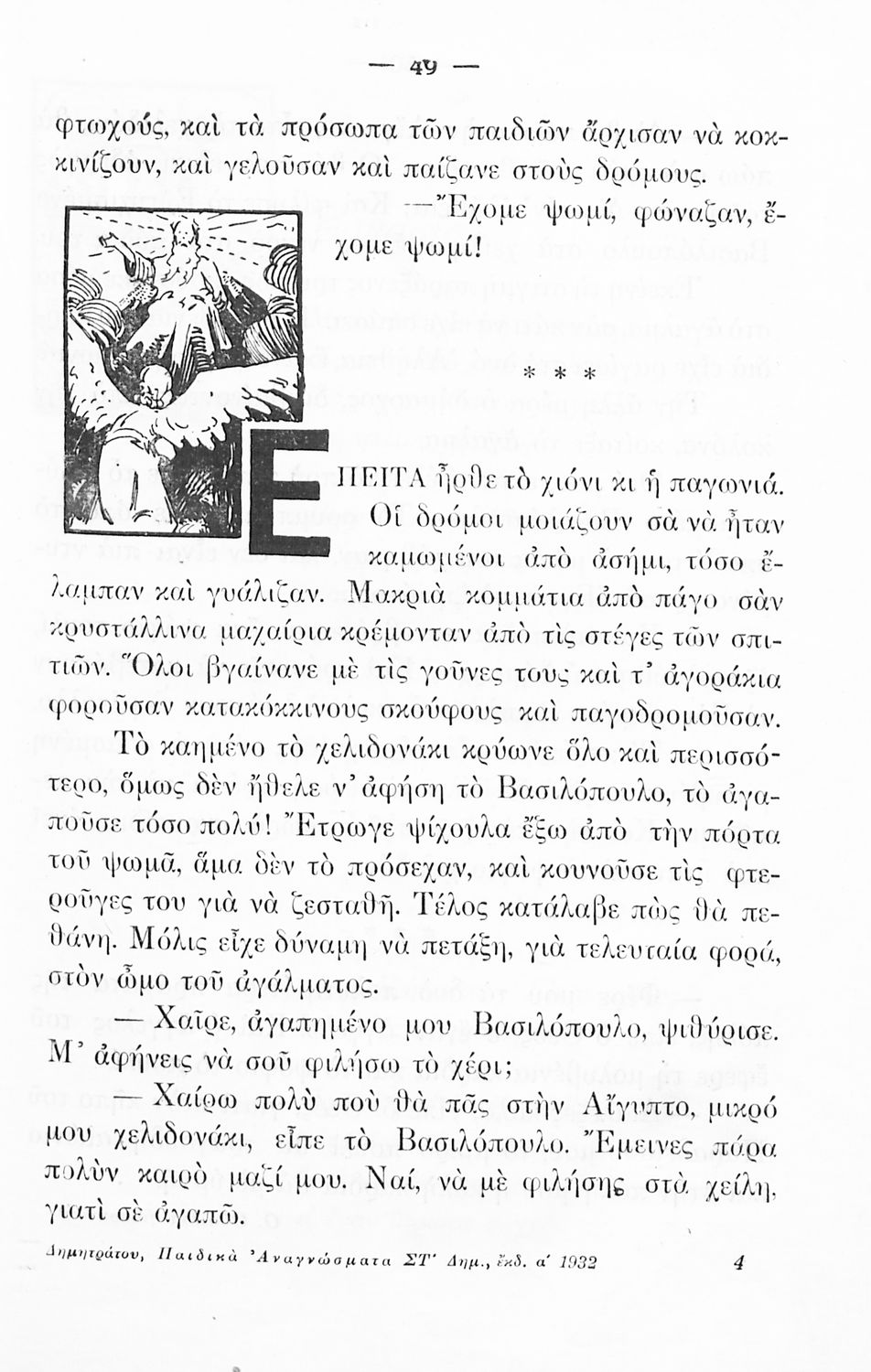 Αναγνωστικό της Δ΄ Τάξης Δημοτικού για το μάθημα της Γλώσσας. Περιλαμβάνει αφηγηματικές ιστορίες με ηθικό περιεχόμενο. Περιέχει εικόνες, οι οποίες οπτικοποιούν τα κείμενα και βοηθούν στη