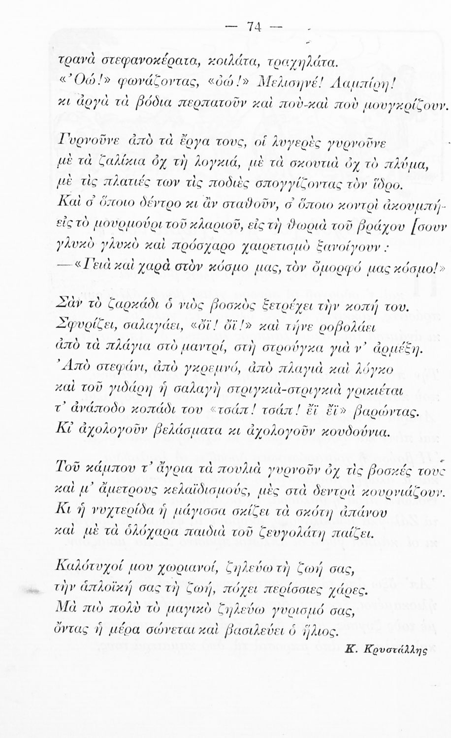 Αναγνωστικό ΣΤ΄ Δημοτικού που περιλαμβάνει ποιήματα και πεζά που αντλούν τα θέματά τους από την καθημερινή ζωή των ανθρώπων και τη σύγχρονη ελληνική ιστορία.