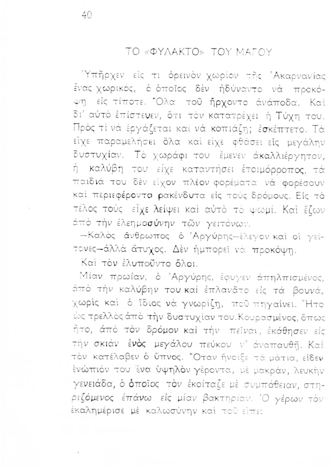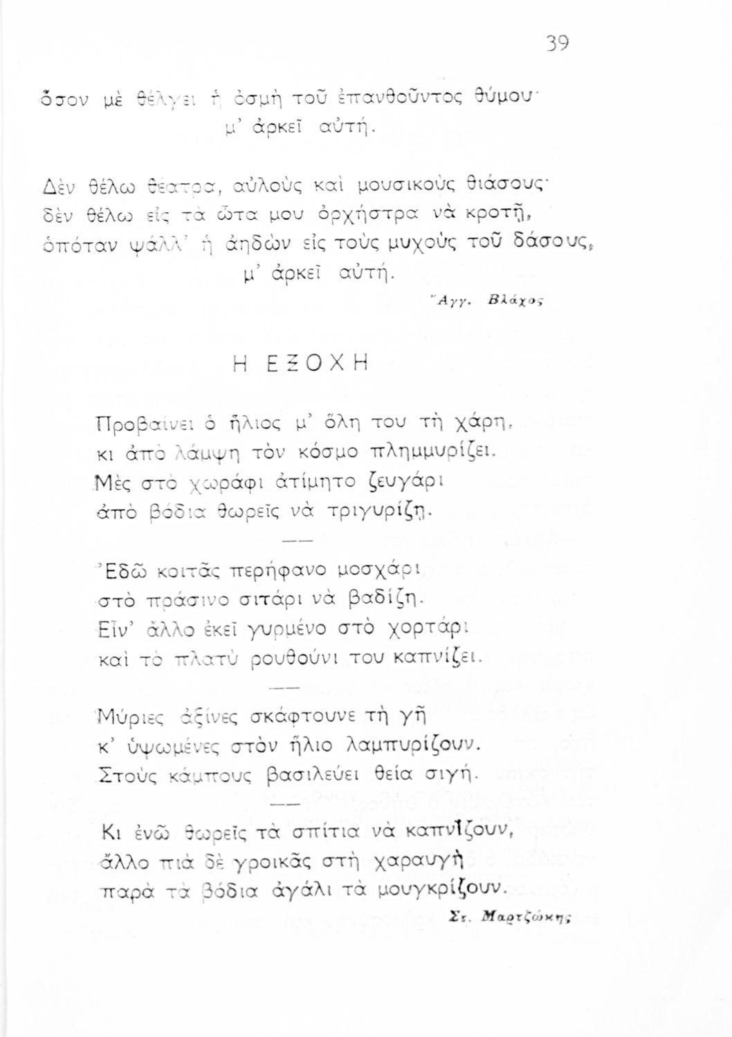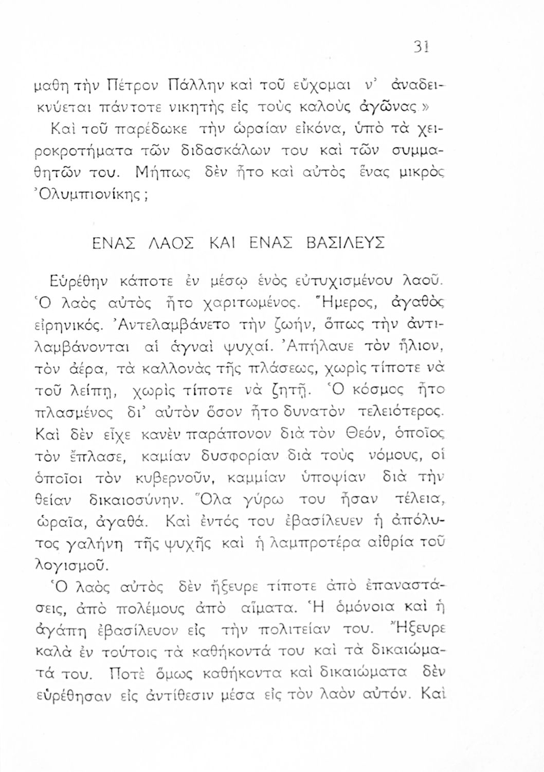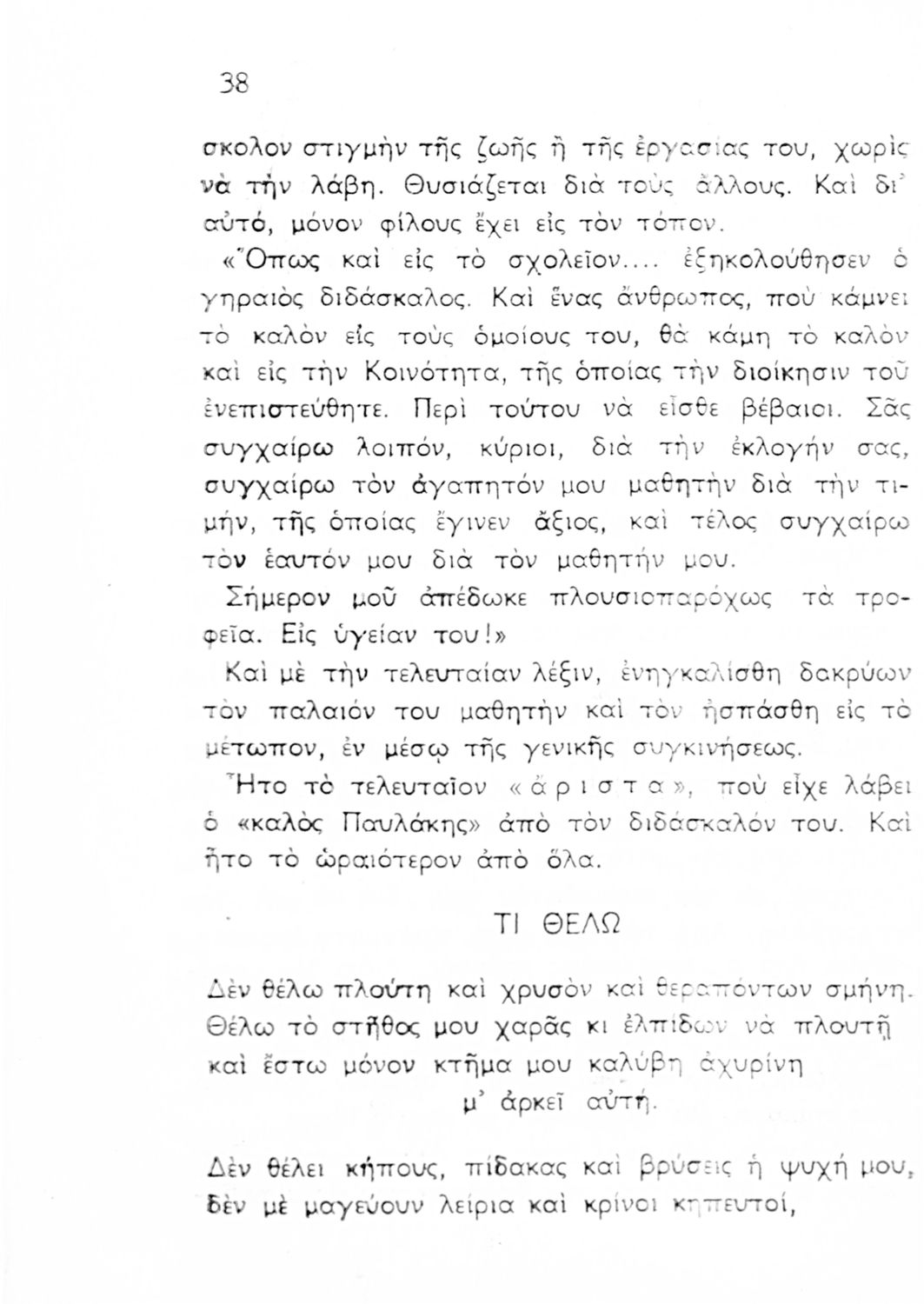 Αναγνωστικό Ε΄ Δημοτικού που περιλαμβάνει πεζογραφήματα εμπνευσμένα από την ελληνική φύση, την αγροτική ζωή και από το τρίπτυχο "Πατρίς- θρησκεία- οικογένεια".
