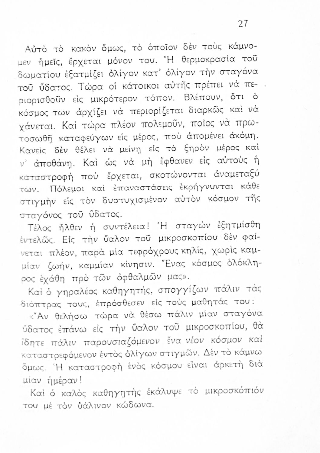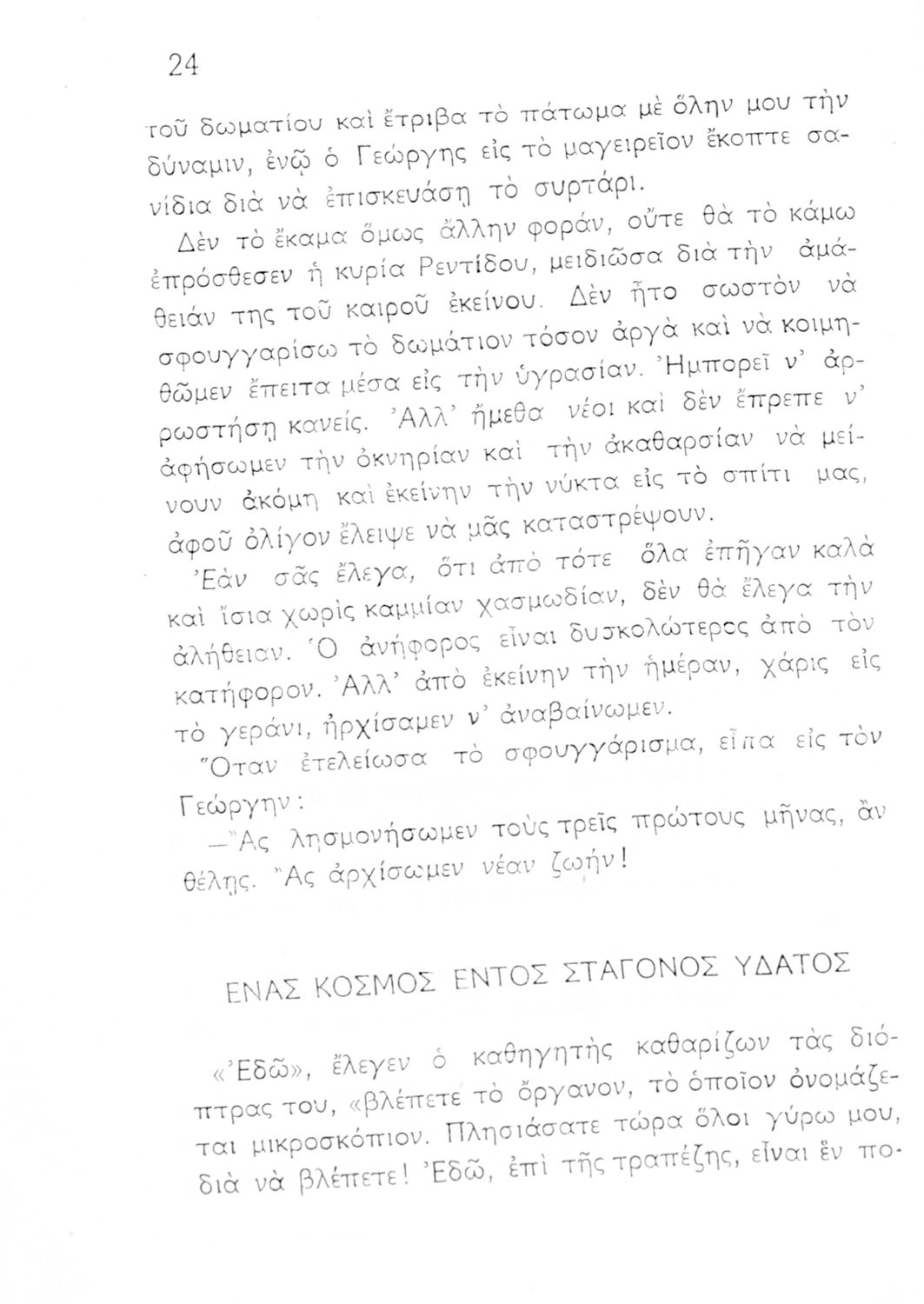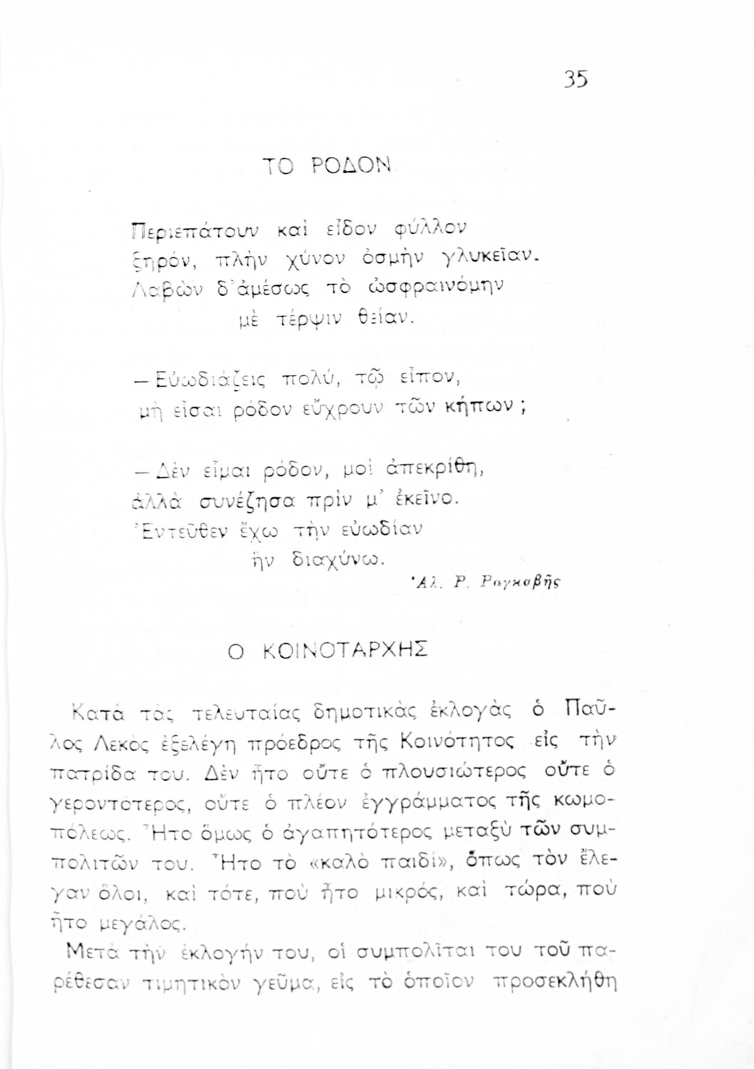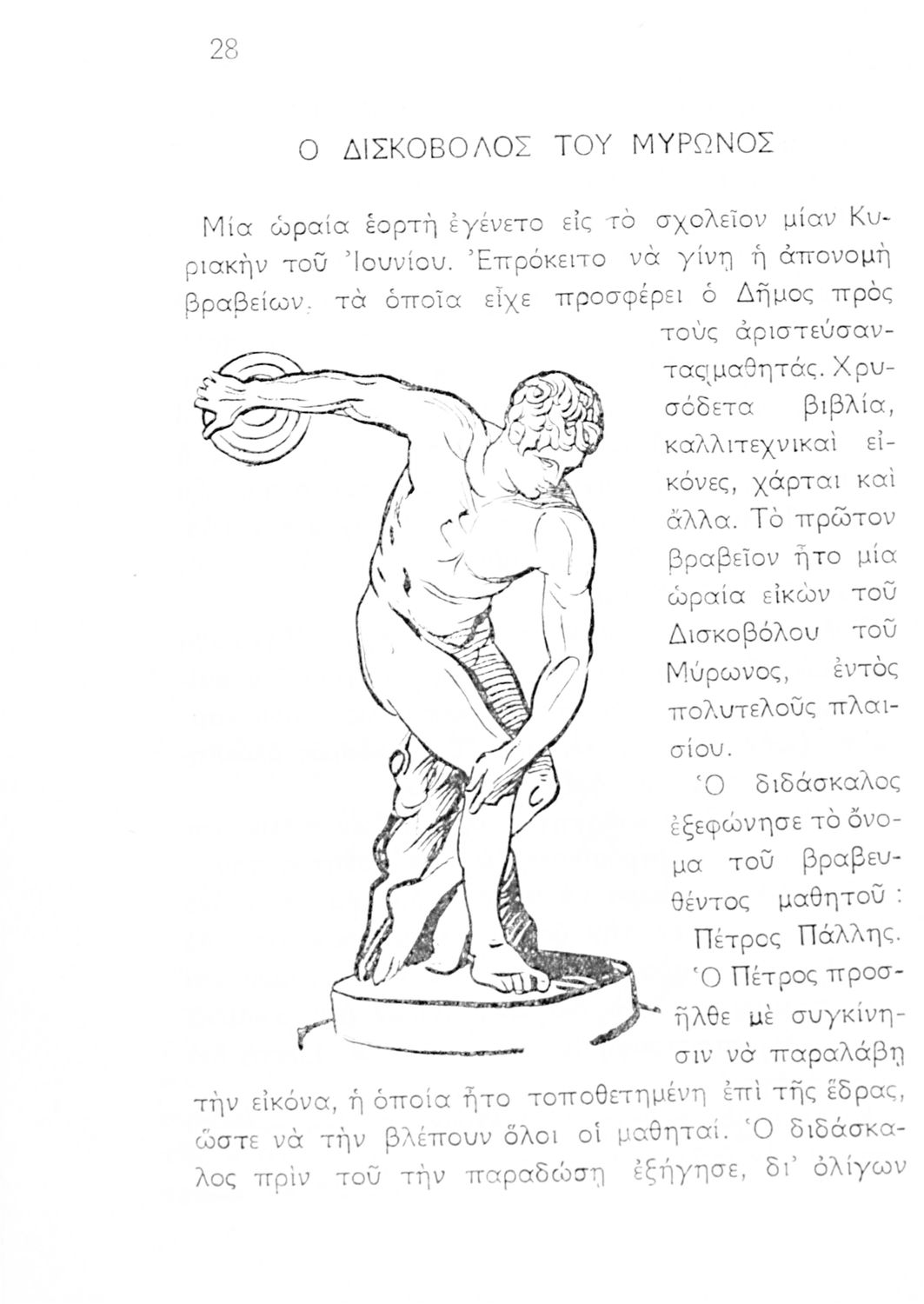 Αναγνωστικό Ε΄ Δημοτικού που περιλαμβάνει πεζογραφήματα εμπνευσμένα από την ελληνική φύση, την αγροτική ζωή και από το τρίπτυχο "Πατρίς- θρησκεία- οικογένεια".