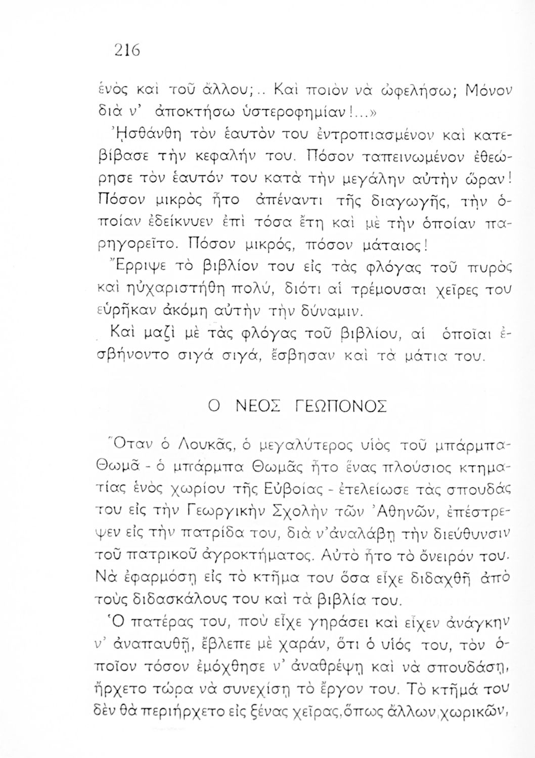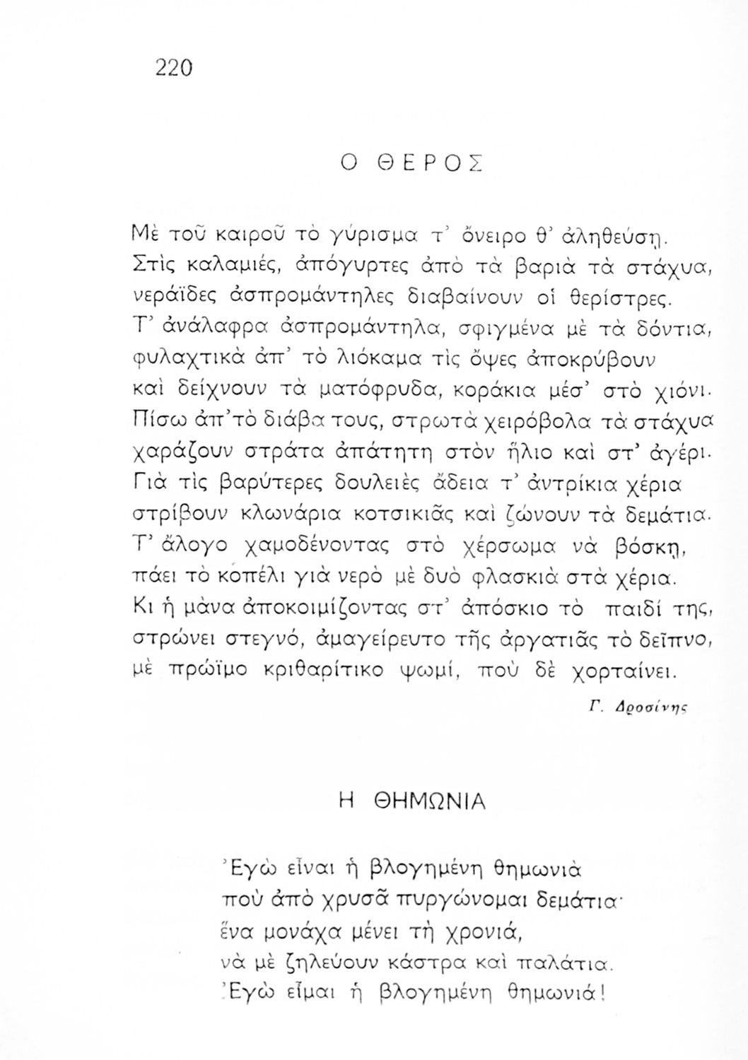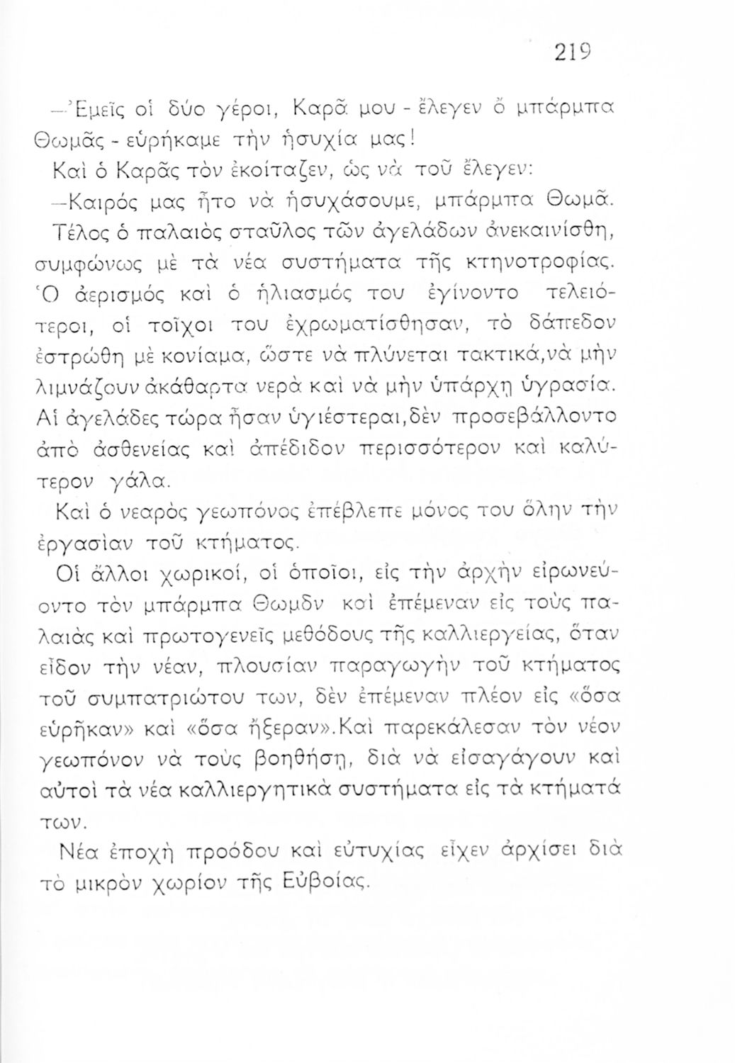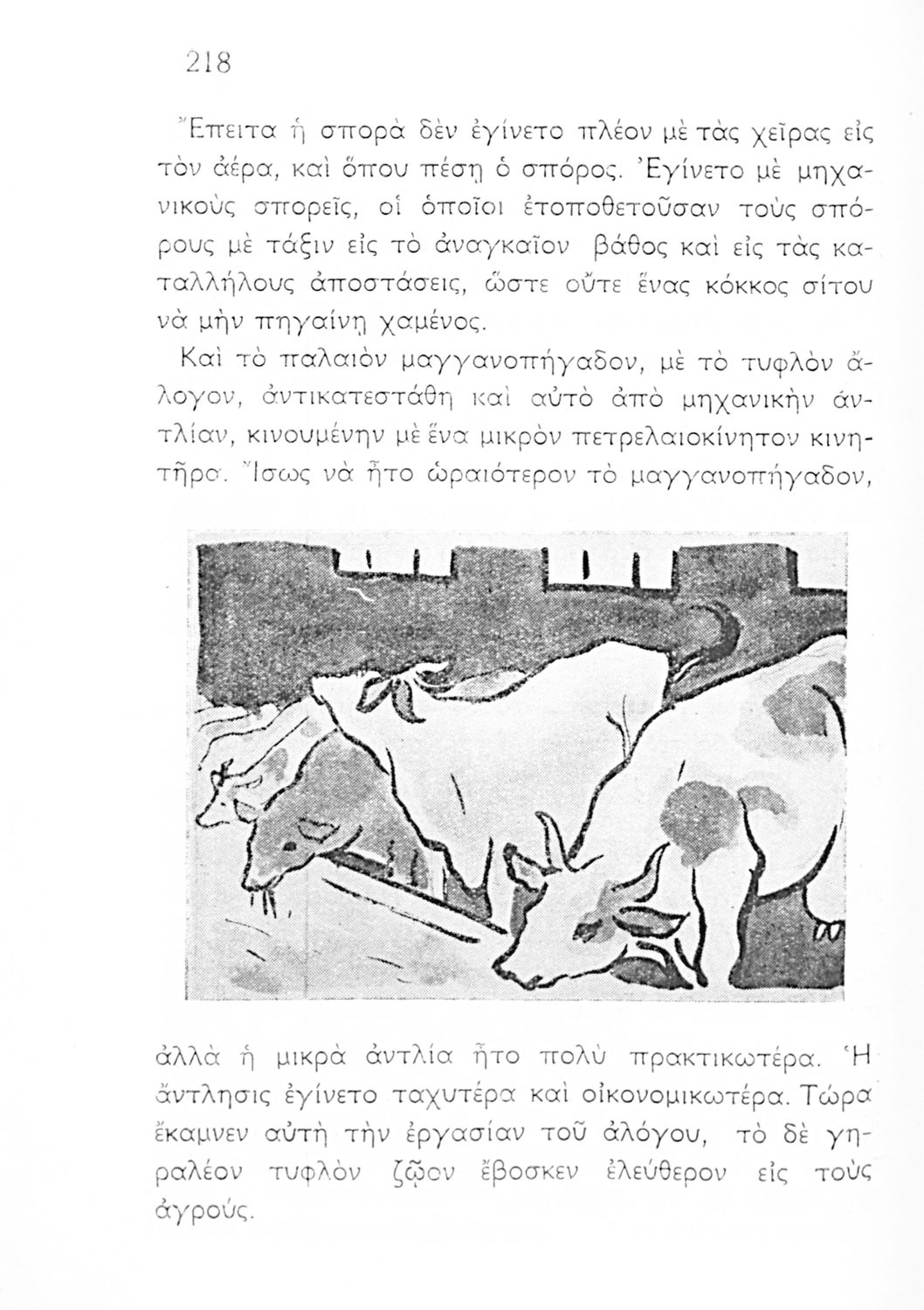 Αναγνωστικό Ε΄ Δημοτικού που περιλαμβάνει πεζογραφήματα εμπνευσμένα από την ελληνική φύση, την αγροτική ζωή και από το τρίπτυχο "Πατρίς- θρησκεία- οικογένεια".