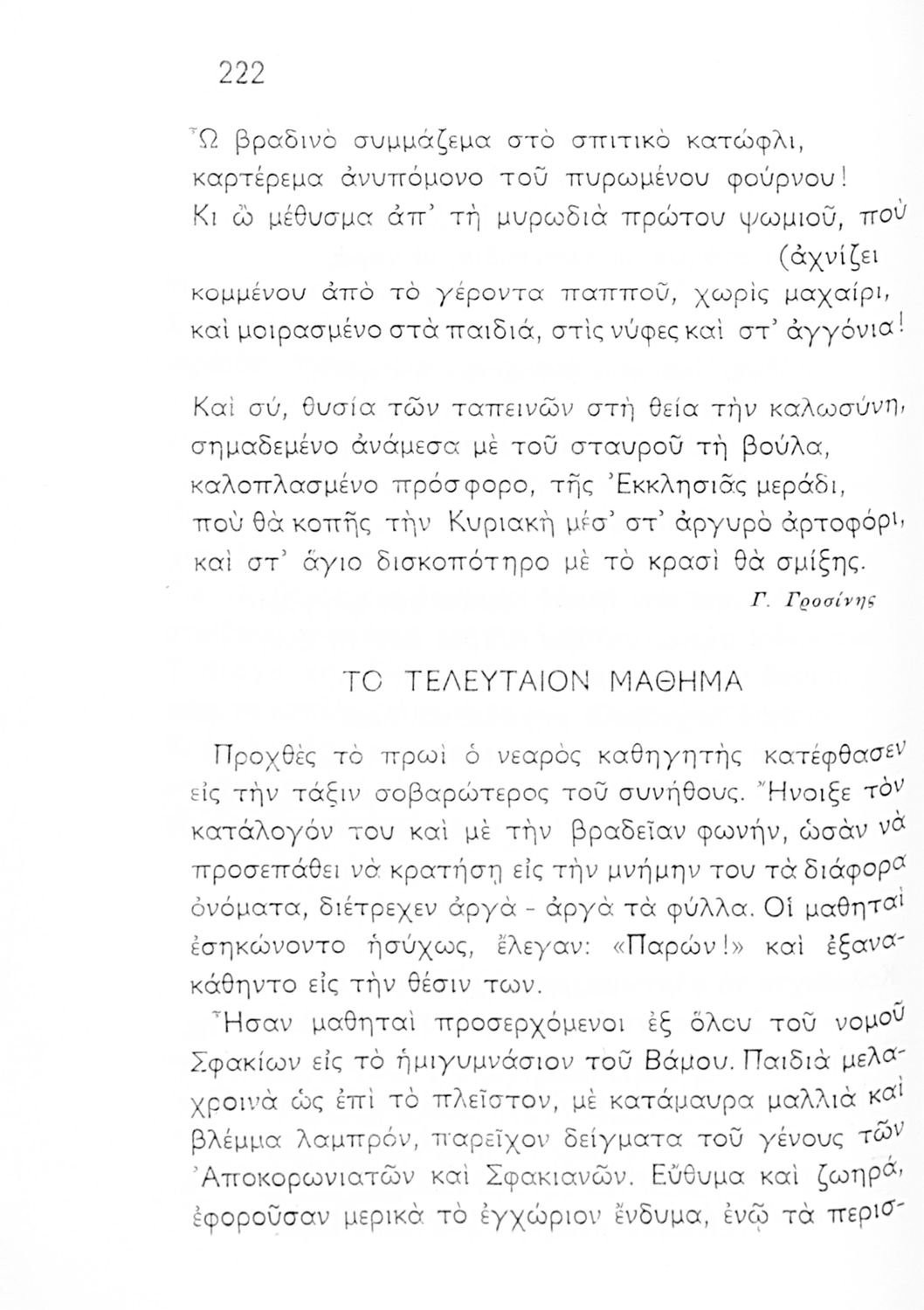 Αναγνωστικό ΣΤ΄ Δημοτικού που αποτελείται από πεζά γραμμένα σε καθαρεύουσα και ποιήματα σε δημοτική εμπνευσμένα από την οικογένεια, τη θρησκεία, την μυθολογία και ιστορία, την υγιεινή, την πατρίδα, την ...