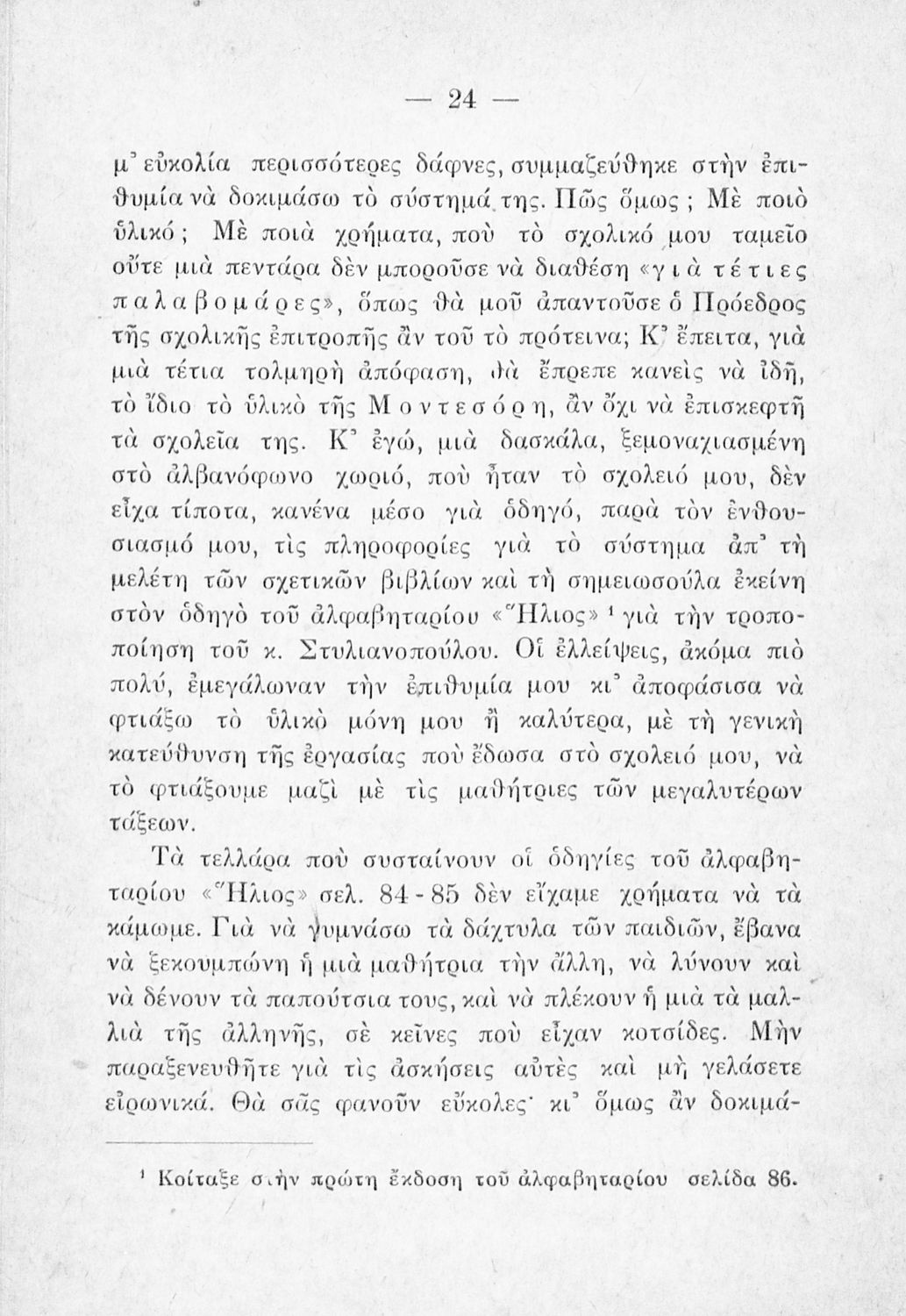 Παιδαγωγικό βοήθημα για το Δημοτικό. Πρόκειται για οδηγό με χρήσιμες και πρακτικές συμβουλές για τους δασκάλους. Αναφέρεται στις δυσκολίες και τα προβλήματα που εμφανίζονται κατά τη διδασκαλία της ανάγνωσης και της γραφής. Περιέχει οδηγίες και υποδειγματικές διδακτικές μεθόδους.