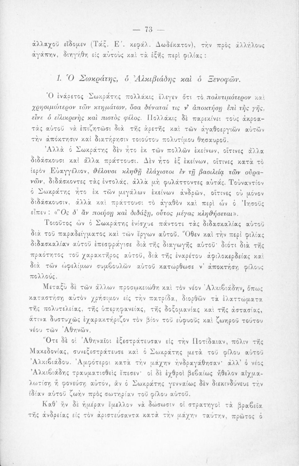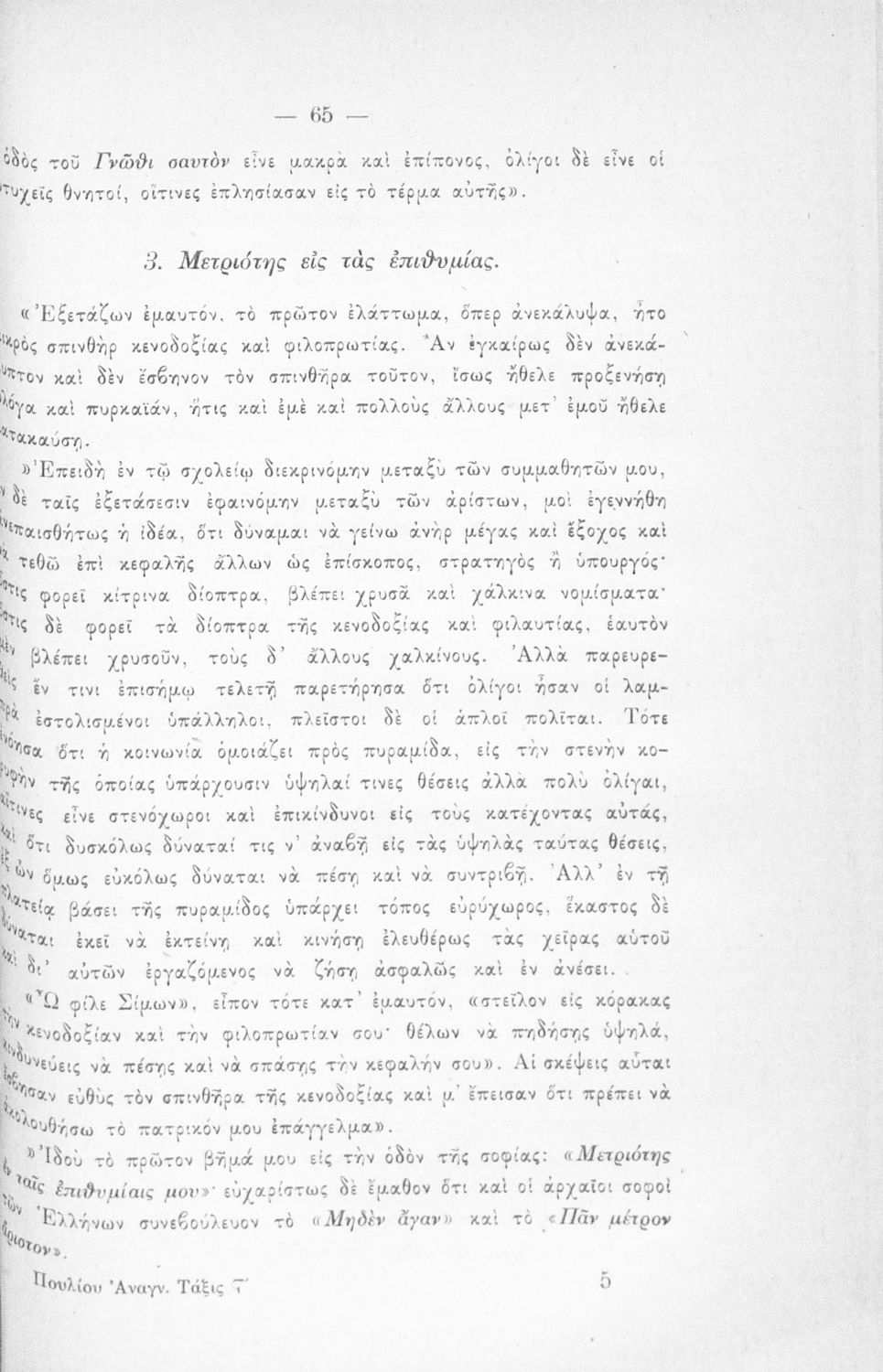Βαθμίδα εκπαίδευσης: Πρωτοβάθμια, Δευτεροβάθμια Τάξη: ΣΤ' Δημοτικού / Β' Ελληνικού Σχολείου Μάθημα: Νέα Ελληνικά Γλώσσα: Καθαρεύουσα Παρουσίαση περιεχομένου: Σχολικό εγχειρίδιο Νέων Ελληνικών ΣΤ΄ Δημοτικού και Β' Ελληνικού Σχολείου που περιλαμβάνει πεζά και ποιήματα εμπνευσμένα από την ελληνική ιστορία και μυθολογία, και τα φυσικά φαινόμενα. |
