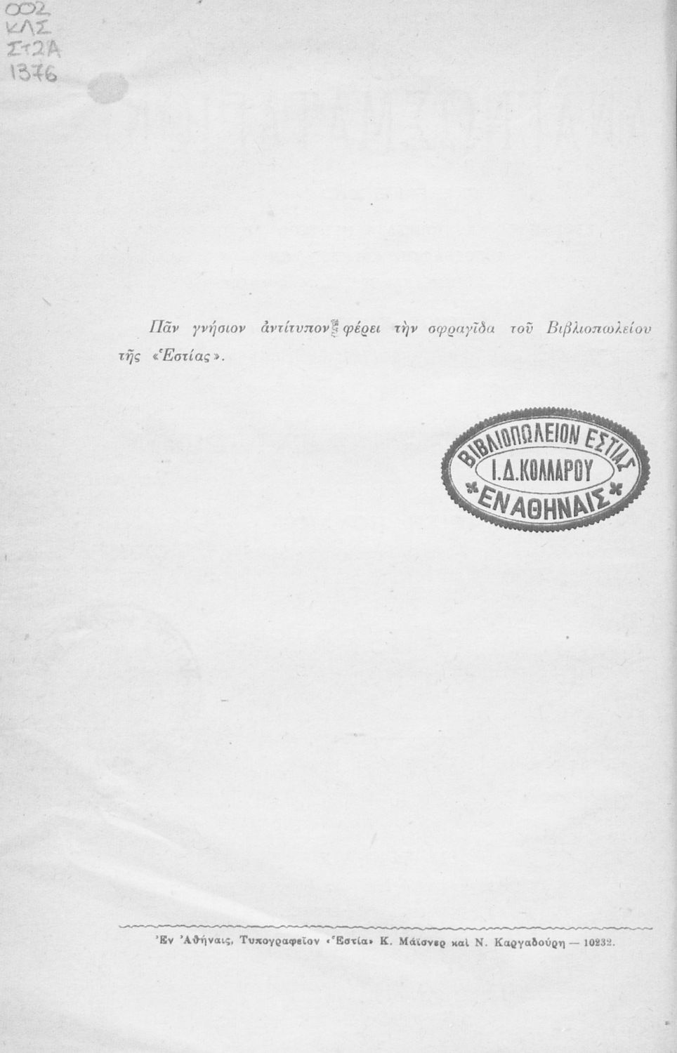 Εκδότης: Ιωάννης Δ. Κολλάρος, Βιβλιοπωλείο της "Εστίας"