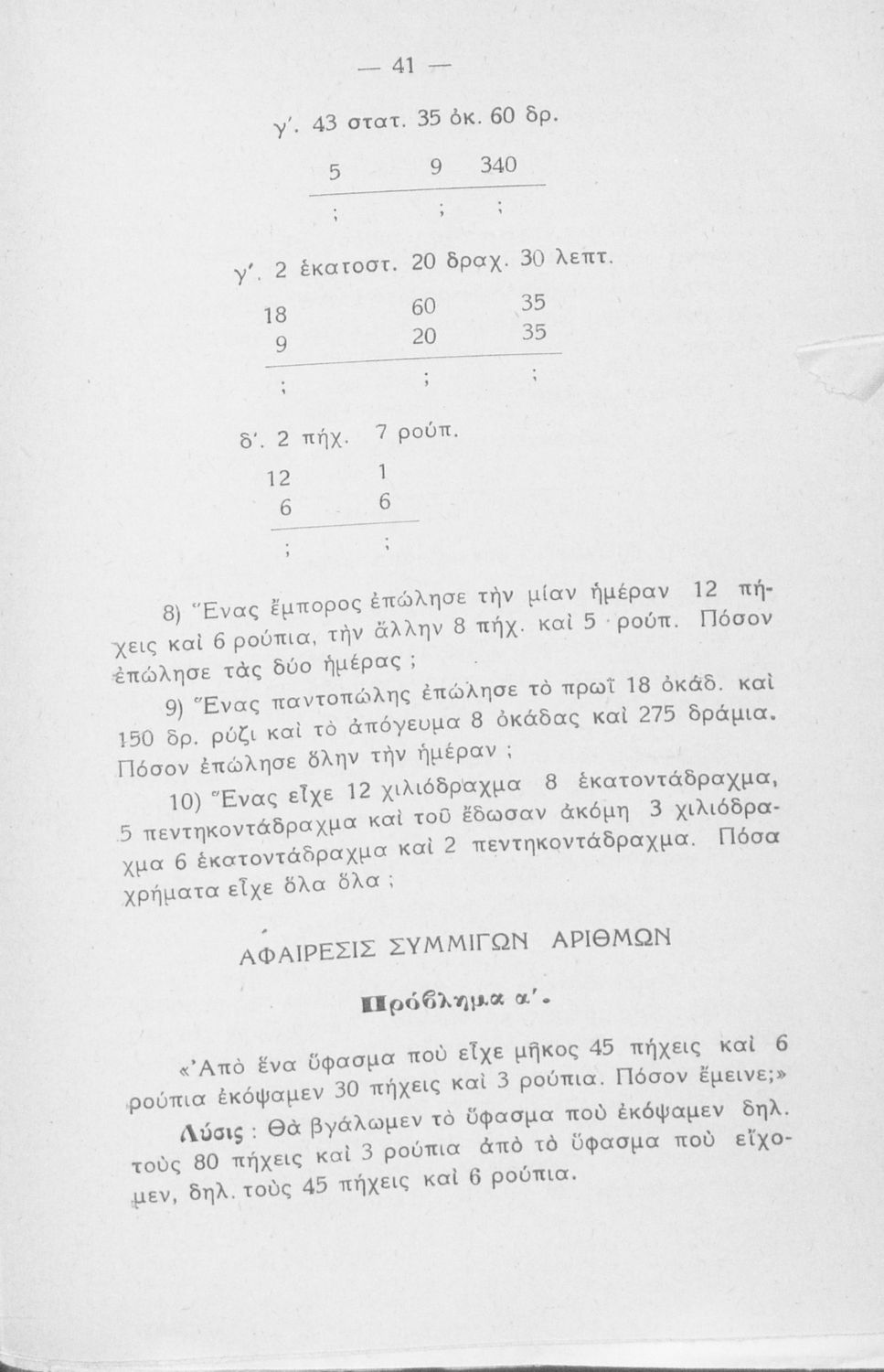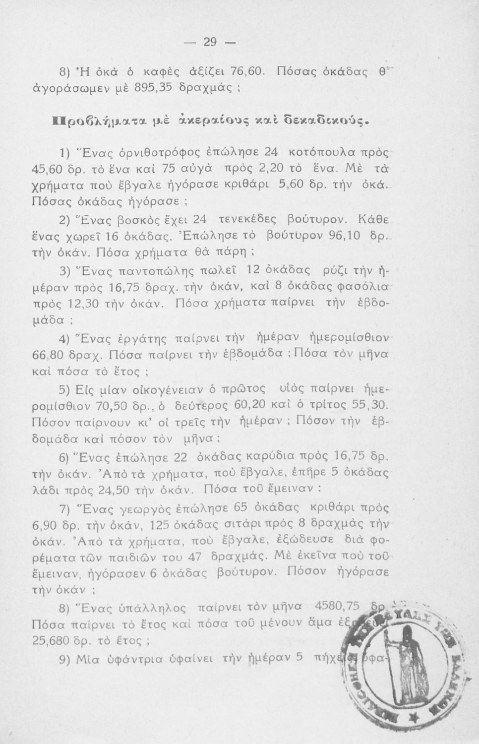 Αριθμητικά προβλήματα προς χρήσιν των μαθητών της τετάρτης τάξεως των Δημοτικών Σχολείων