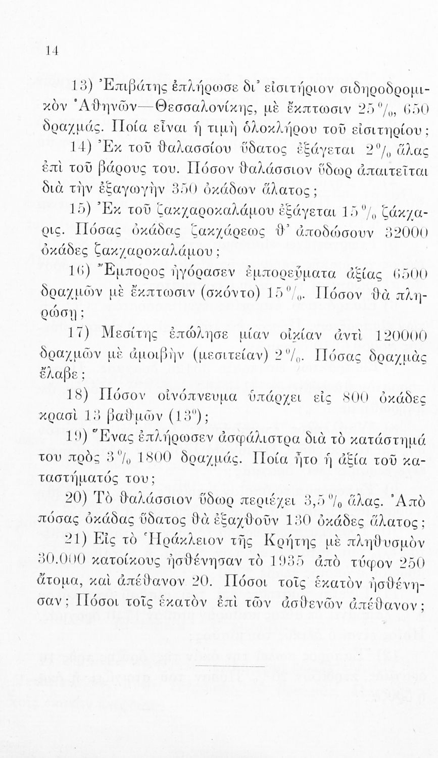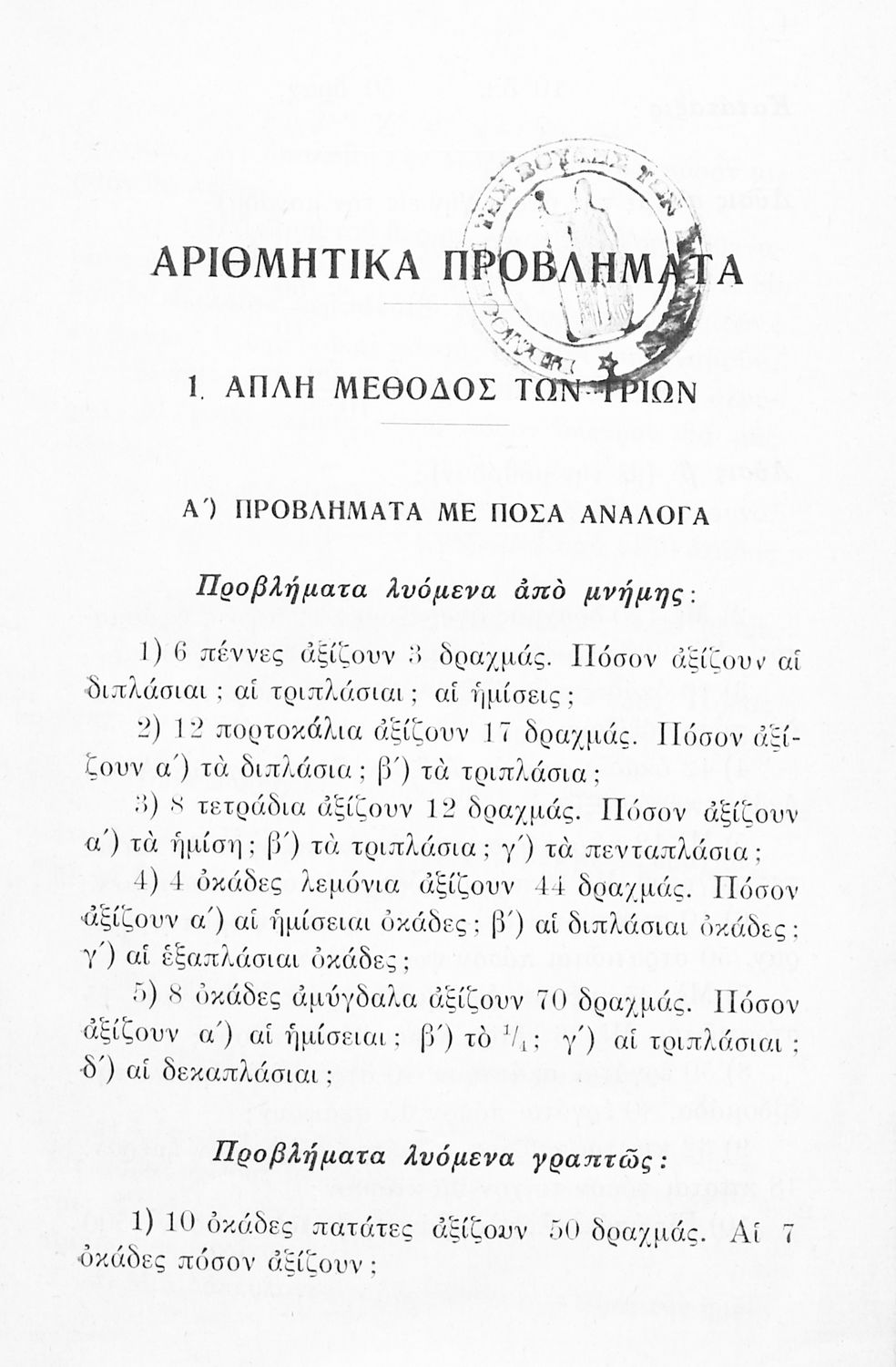 Βαθμίδα εκπαίδευσης: Πρωτοβάθμια Τάξη: ΣΤ' Δημοτικού Μάθημα: Μαθηματικά Γλώσσα: Απλή καθαρεύουσα Παρουσίαση περιεχομένου: Μαθητικό βοήθημα Αριθμητικής και Γεωμετρίας ΣΤ΄ Δημοτικού που περιλαμβάνει προβλήματα και της λύσεις τους. |