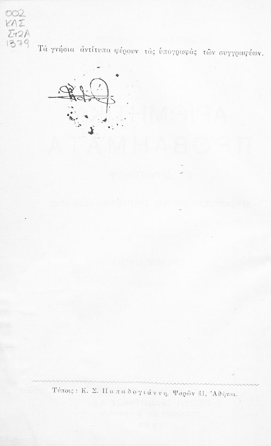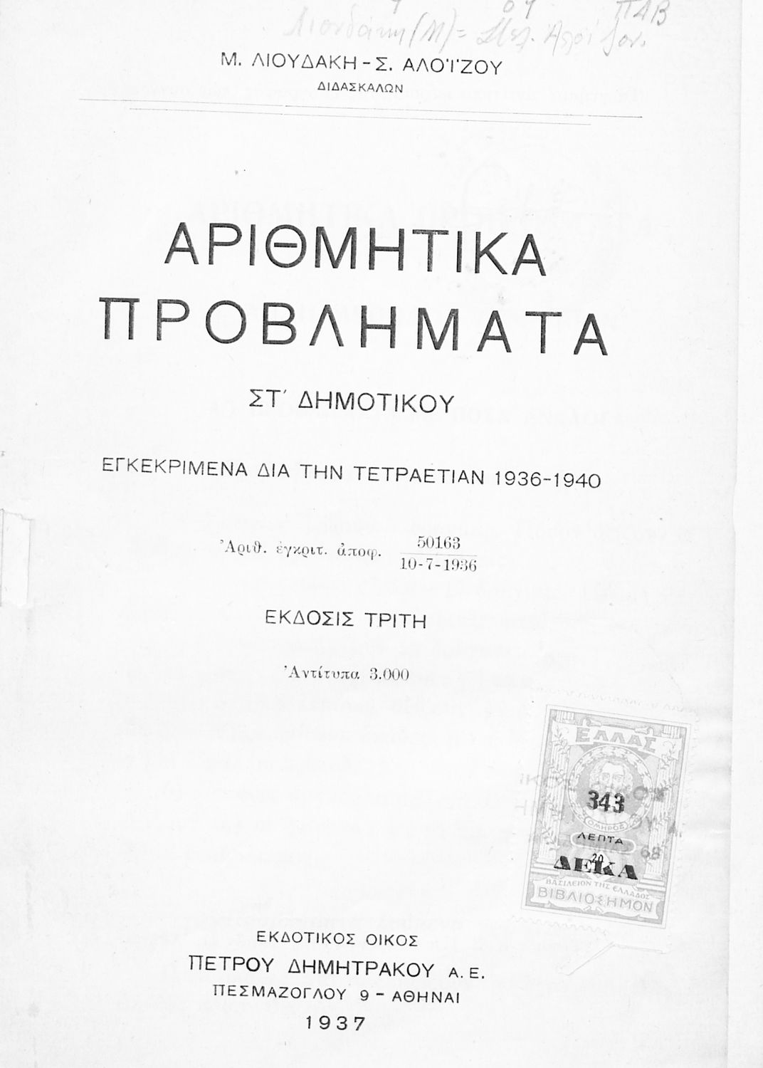 Εκδότης: Πέτρος Δημητράκος Έτος έκδοσης: 1937 Τόπος έκδοσης: Αθήνα Έκδοση: 3η Υπουργική απόφαση / Σύμβαση: 50163/10-7-1936 Έτος έγκρισης: 1936 |