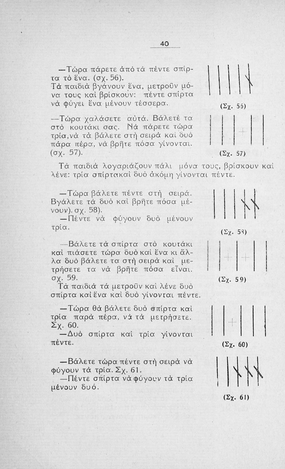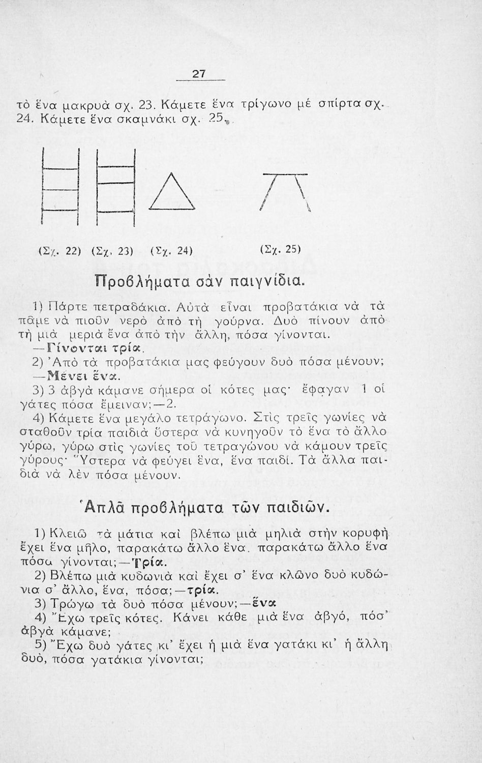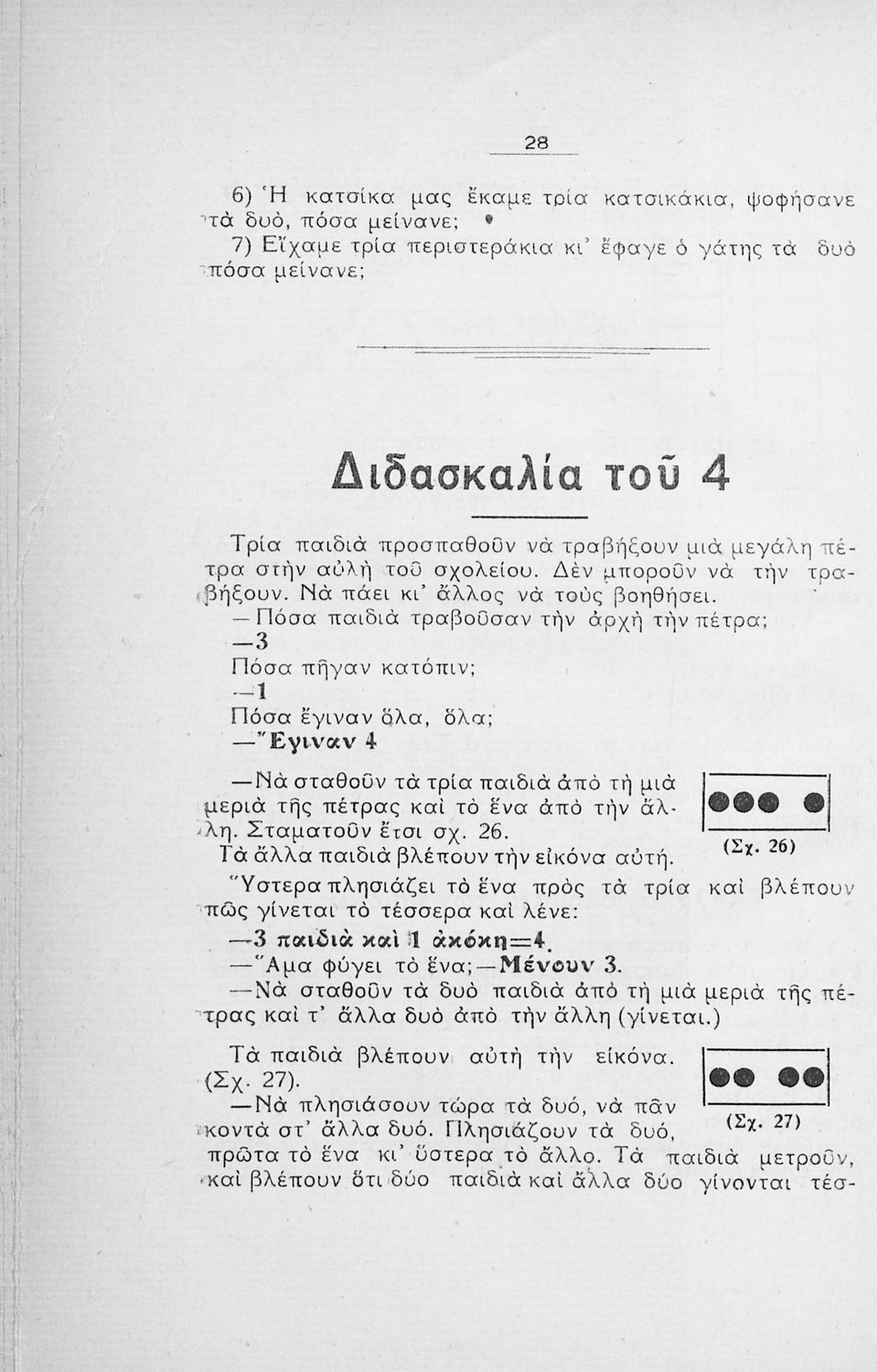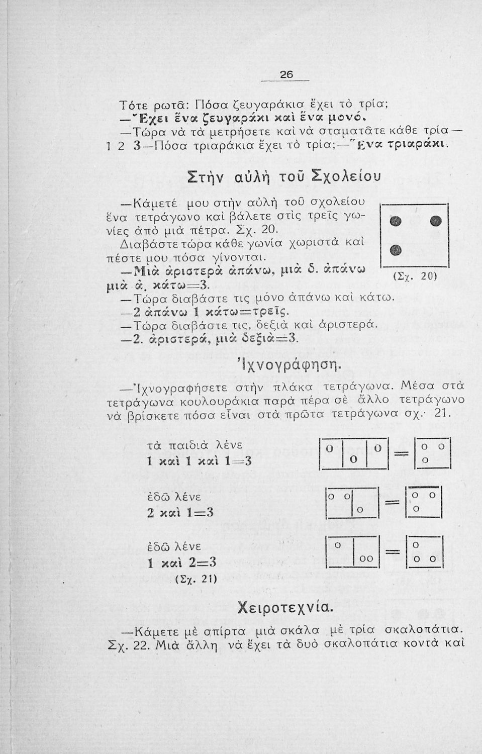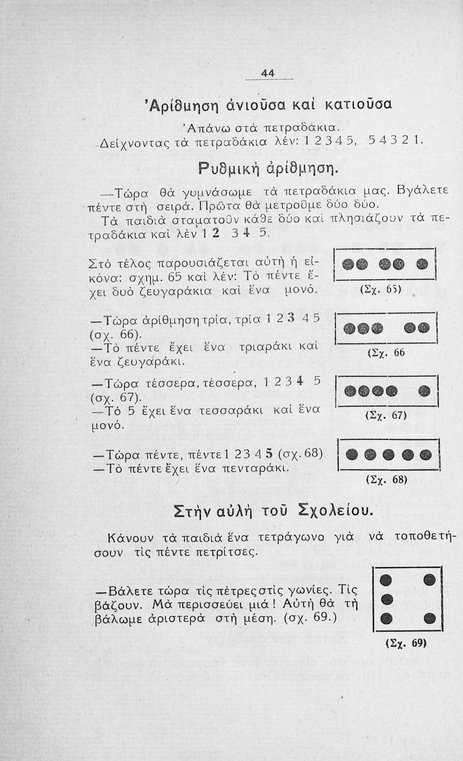 Παρουσίαση περιεχομένου: Το σύγγραμμα ήταν παιδαγωγικό βοήθημα για τη διδασκαλία των Μαθηματικών στο Δημοτικό. Αποτελεί οδηγό για τον εκπαιδευτικό, προτείνοντας μεθόδους διδασκαλίας για την αριθμητική. Περιέχει θεωρία, ασκήσεις, προβλήματα, καθώς και σχήματα, τα οποία αισθητοποιούν τις μαθηματικές έννοιες και διευκολύνουν τη διδασκαλία.