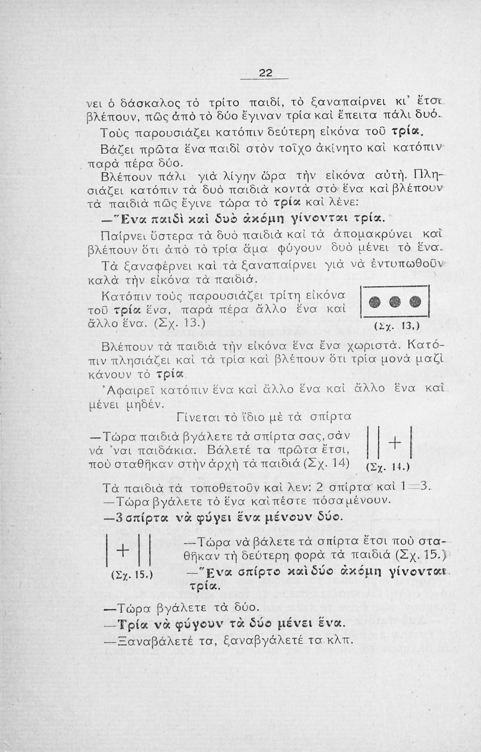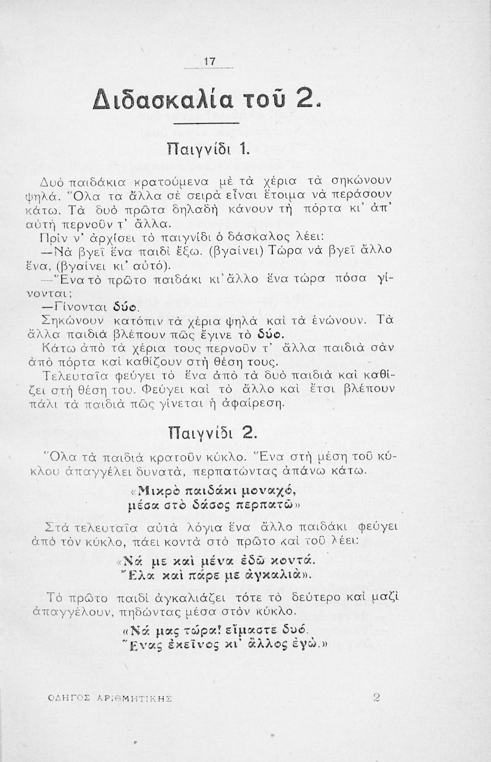 Παρουσίαση περιεχομένου: Το σύγγραμμα ήταν παιδαγωγικό βοήθημα για τη διδασκαλία των Μαθηματικών στο Δημοτικό. Αποτελεί οδηγό για τον εκπαιδευτικό, προτείνοντας μεθόδους διδασκαλίας για την αριθμητική. Περιέχει θεωρία, ασκήσεις, προβλήματα, καθώς και σχήματα, τα οποία αισθητοποιούν τις μαθηματικές έννοιες και διευκολύνουν τη διδασκαλία.