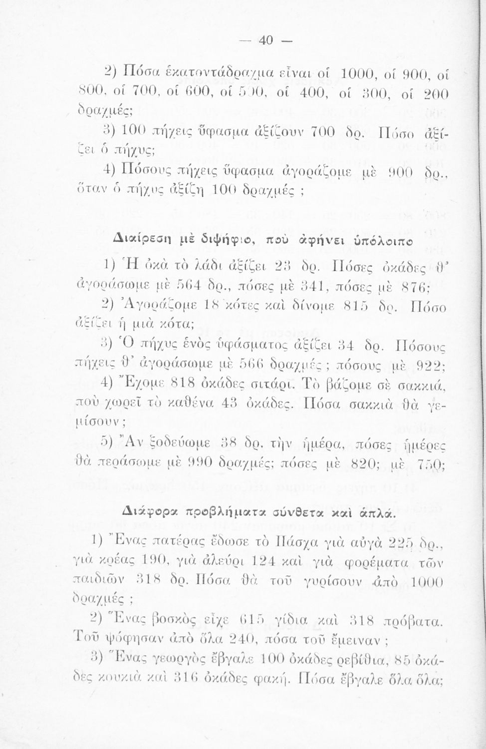 Σχολικό εγχειρίδιο με προβλήματα Αριθμητικής για την Γ΄ Δημοτικού χωρισμένο με βάση τις αριθμητικές πράξεις και τις εκατοντάδες.