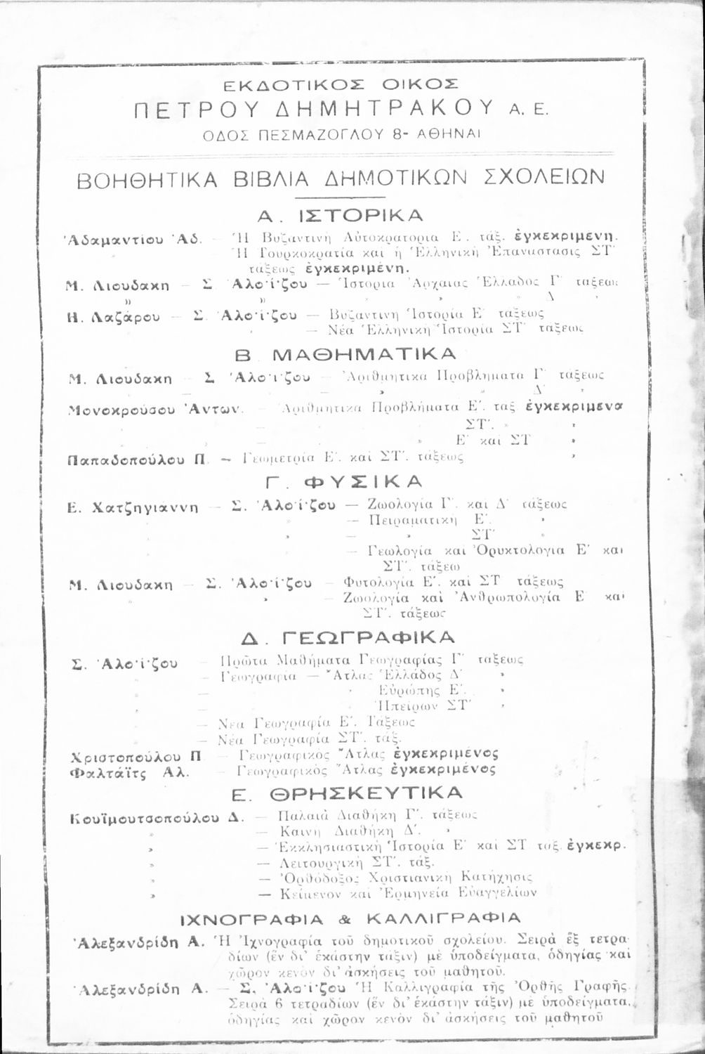 Σχολικό εγχειρίδιο Γ΄ και Δ΄ Δημοτικού που περιέχει τη γραμματικής της νέας ελληνικής. Την έκδοση επιμελήθηκε ο Γ. Λογοθέτης, τέως διευθυντής του επταταξίου δημ. Τμήμ.της Ευαγγελικής Σχολής.