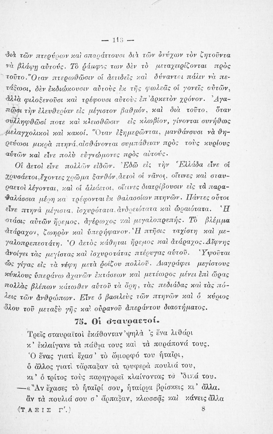 Αναγνωστικό Γ΄ Δημοτικού που περιλαμβάνει ποιήματα και πεζά με θέματα όπως η καλή και κακή συναναστροφή, η φρόνηση, η οκνηρία, η φιλανθρωπία και η πίστη στο Θεό
