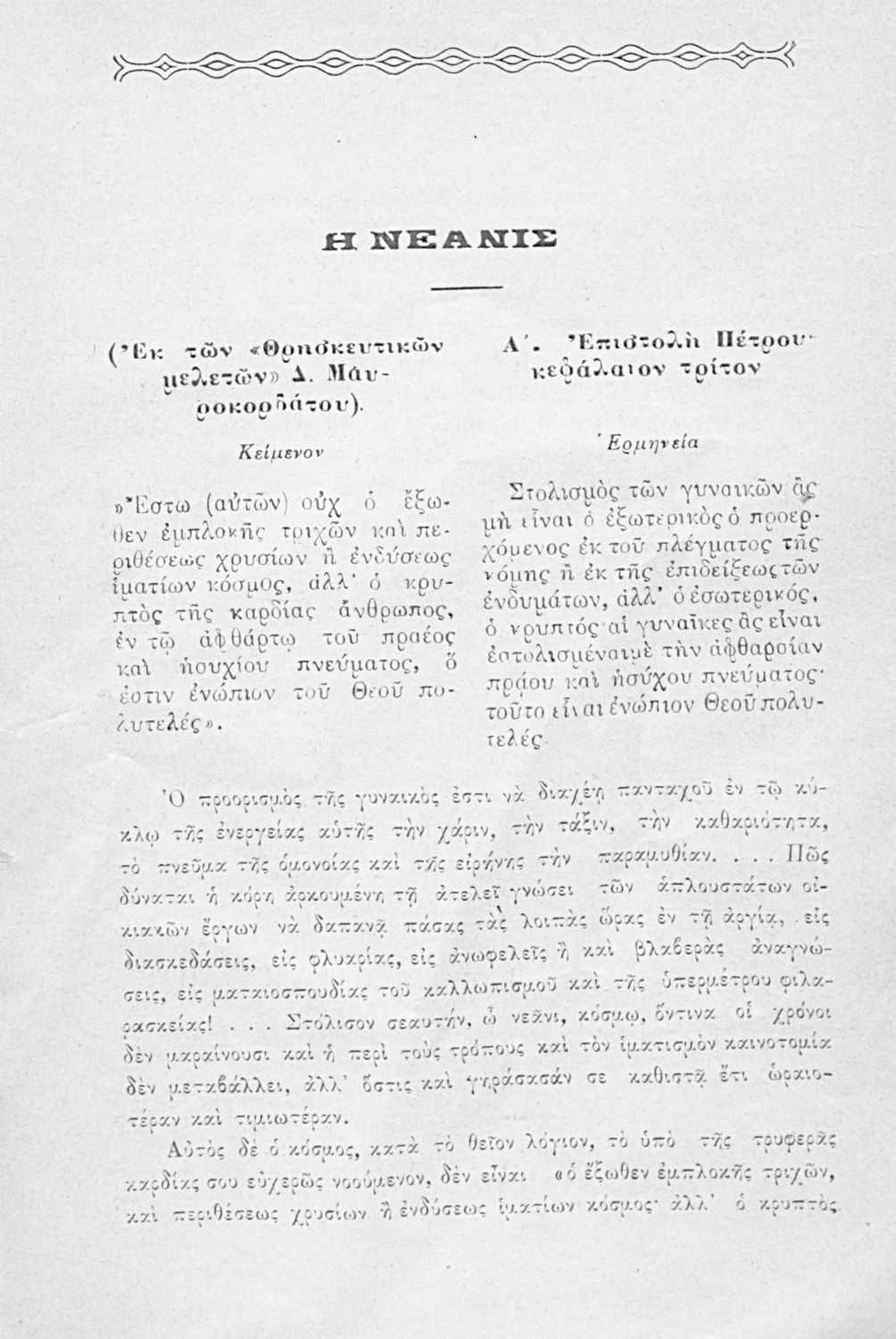 Σχολικό εγχειρίδιο Αρχαίων Ελληνικών για τις Α' Ελληνικού Σχολείου και Παρθεναγωγείου και την Ε΄ Δημοτικού που περιέχει κείμενα στην αρχαία ελληνική εμπνευσμένα από την ελληνική μυθολογία, και γραμματικές, ...