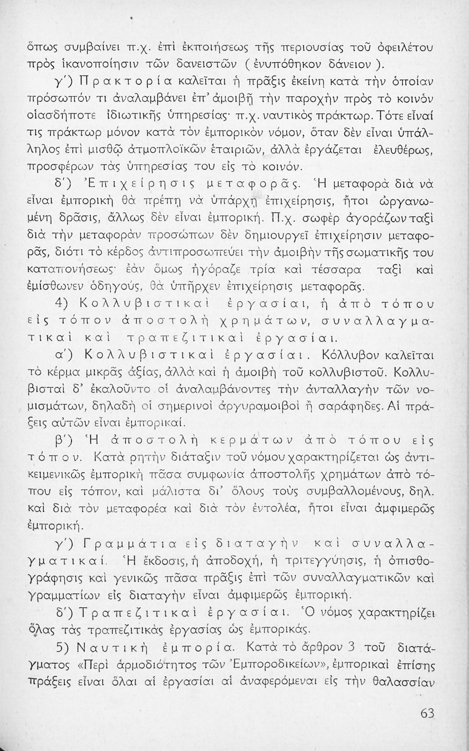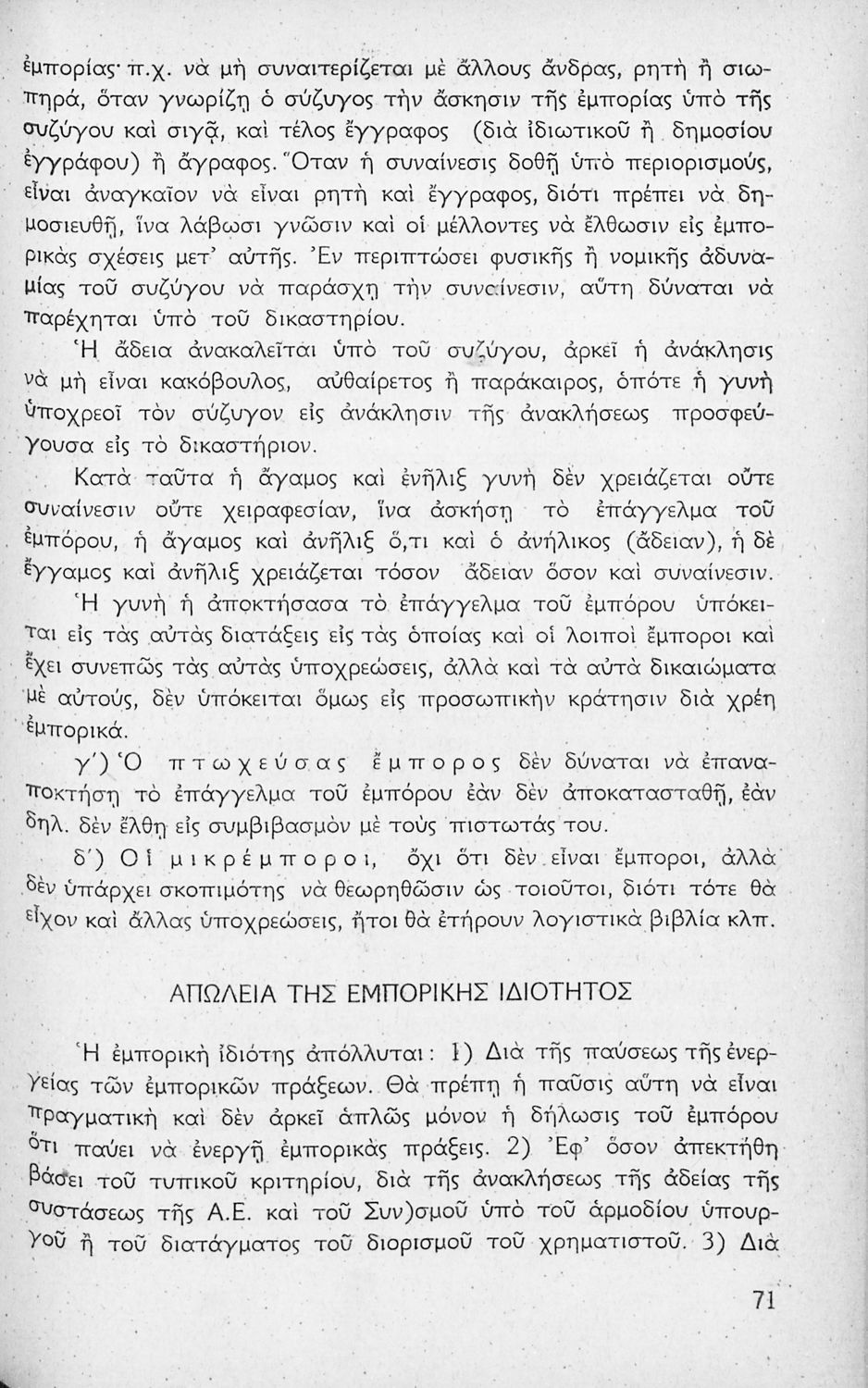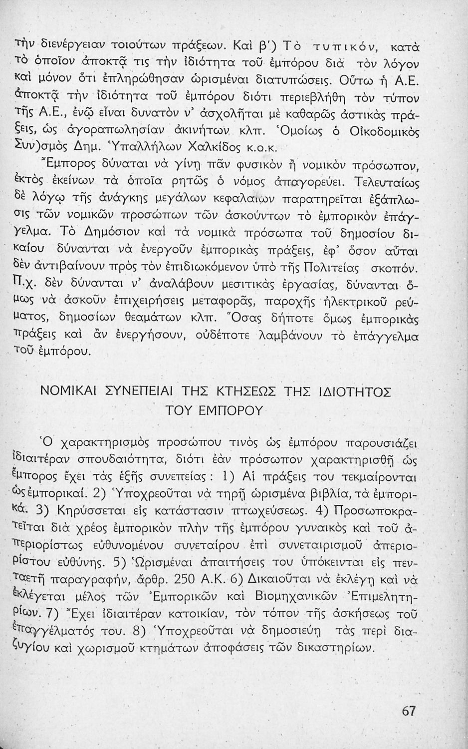 Σχολικό εγχειρίδιο εμπορικού Δικαίου για τις Ε' και ΣΤ΄ Εμπορικών Σχολών που περιλαμβάνει στις γενικές αρχές του αστικού δικαίου, εμπορικού, ναυτικού, ασφαλιστικού και πτωχευτικού Δικαίου.