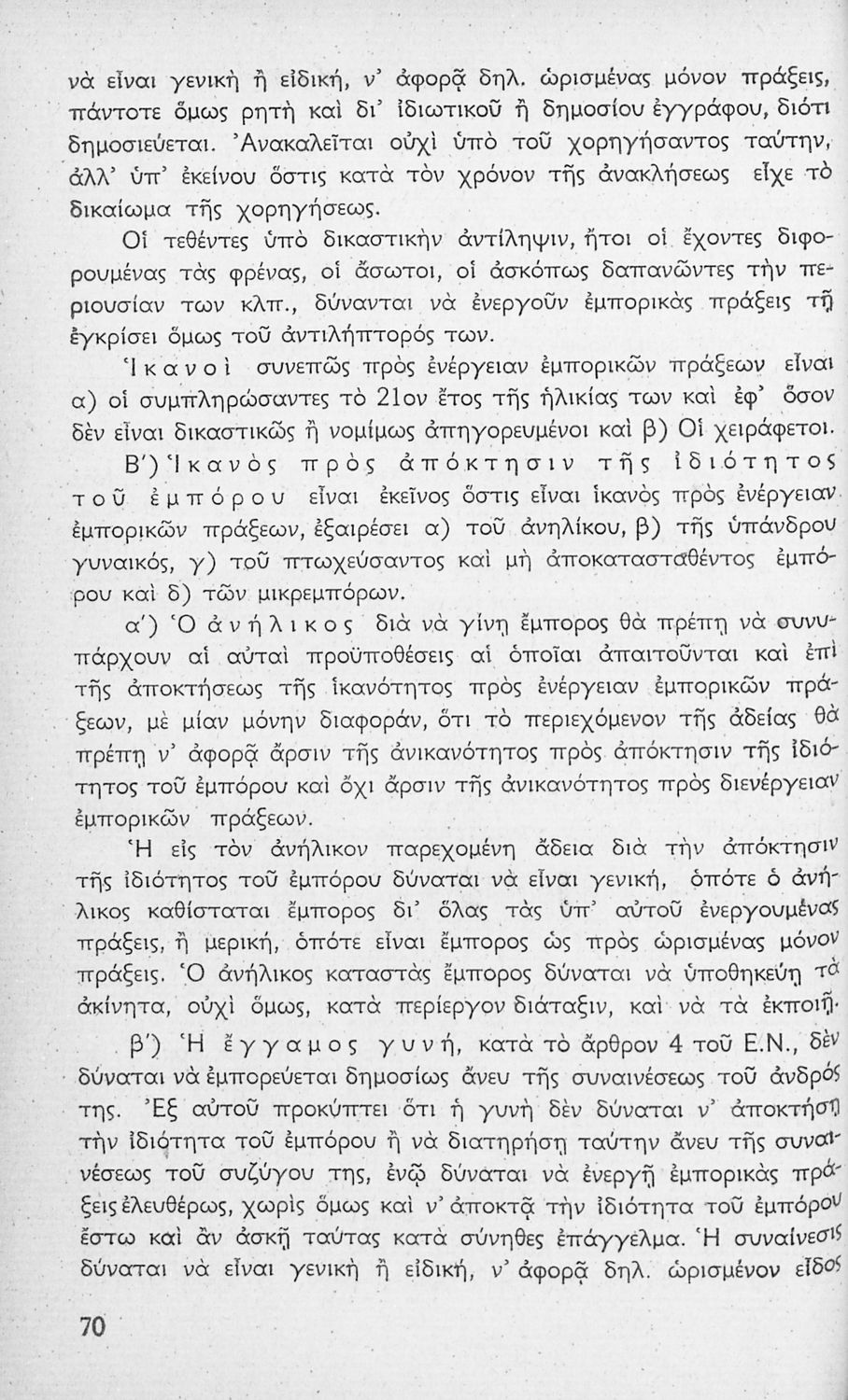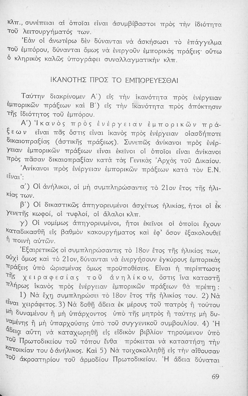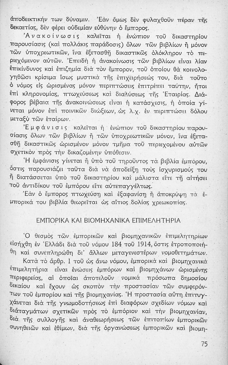 Σχολικό εγχειρίδιο εμπορικού Δικαίου για τις Ε' και ΣΤ΄ Εμπορικών Σχολών που περιλαμβάνει στις γενικές αρχές του αστικού δικαίου, εμπορικού, ναυτικού, ασφαλιστικού και πτωχευτικού Δικαίου.