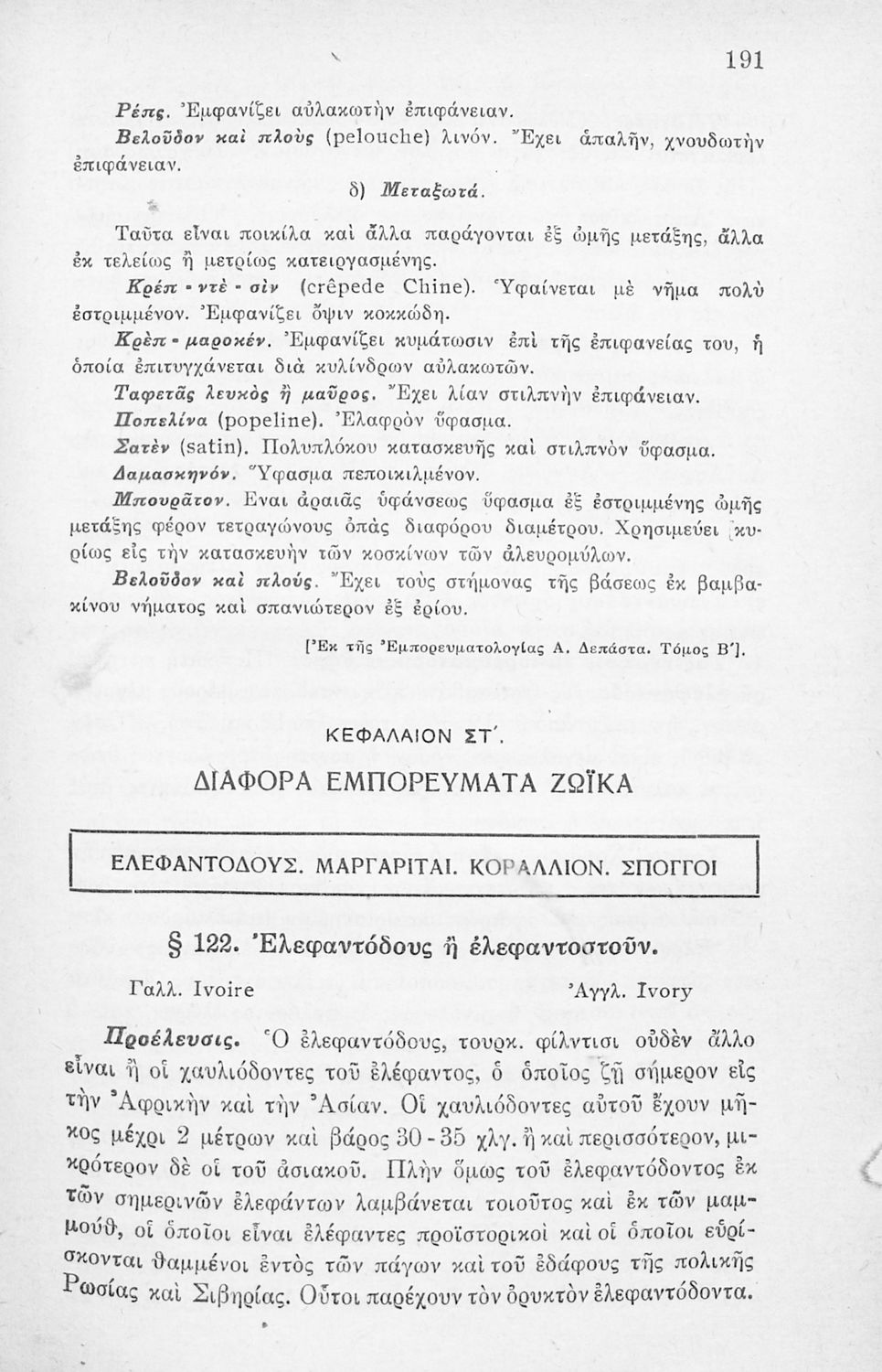 Παρουσίαση περιεχομένου: Σχολικό εγχειρίδιο Εμπορευματολογίας των Ανώτερων Τάξεων των Μέσων Εξατάξιων Εμπορικών Σχολών που παρουσιάζει τα φυτικά και ζωικά εμπορεύματα και τους τόπους παραγωγής τους.