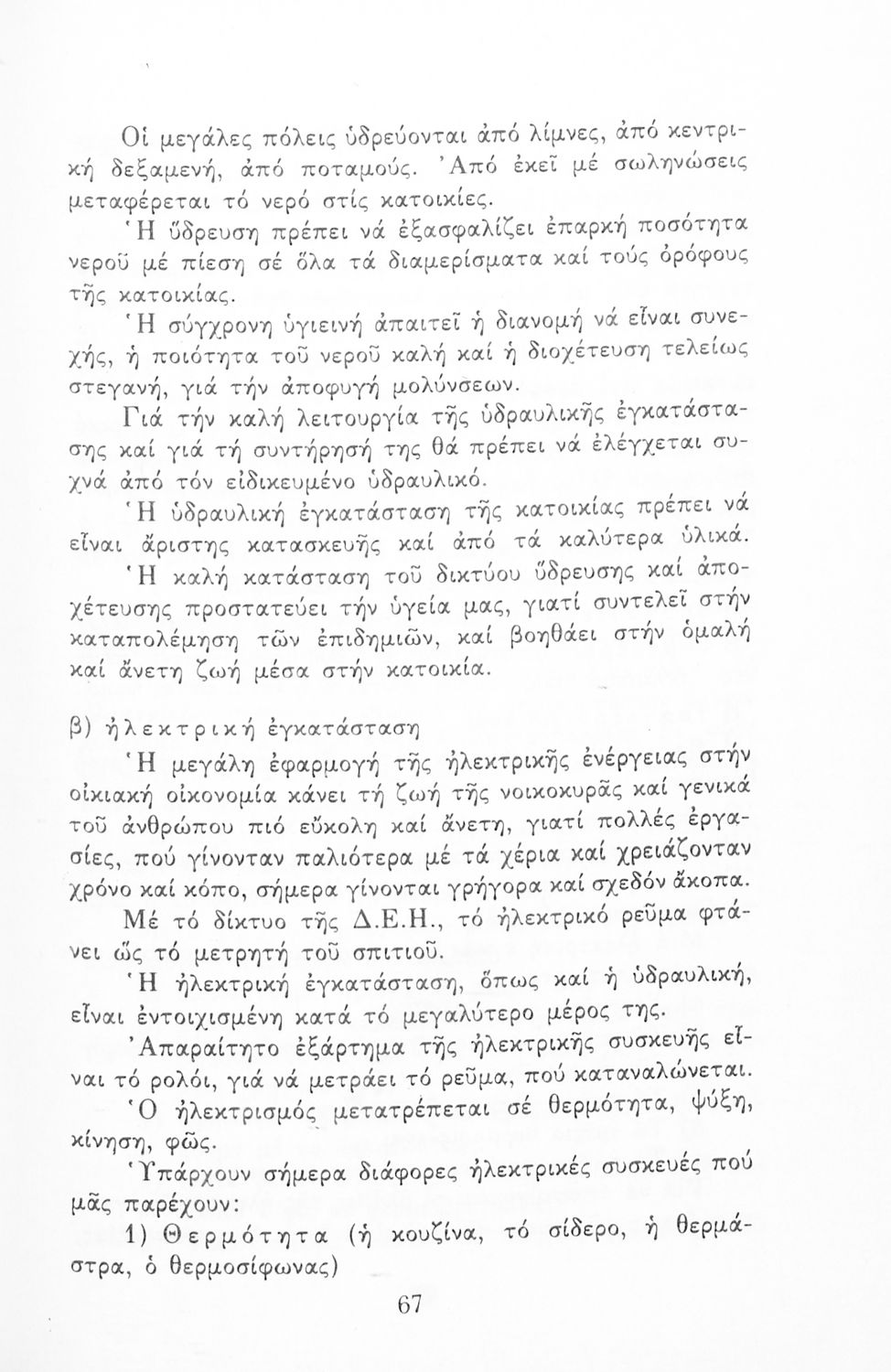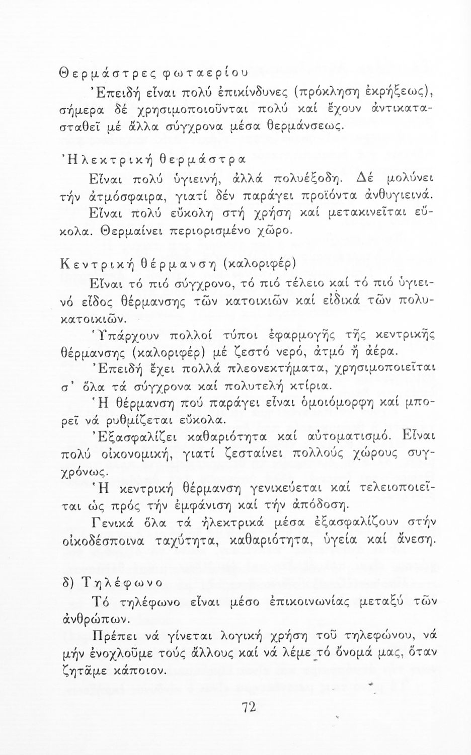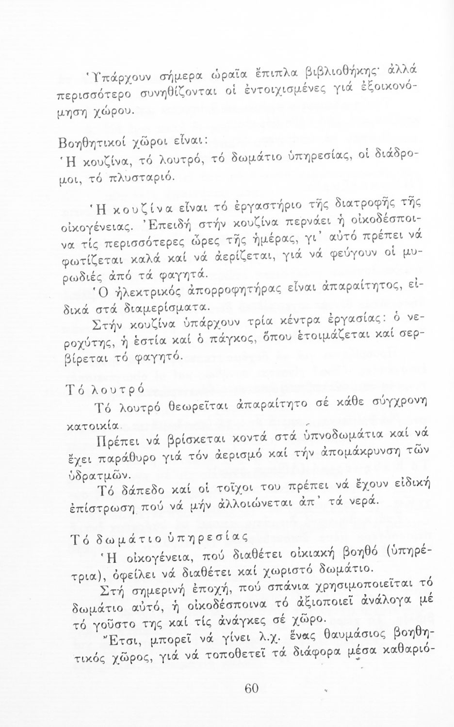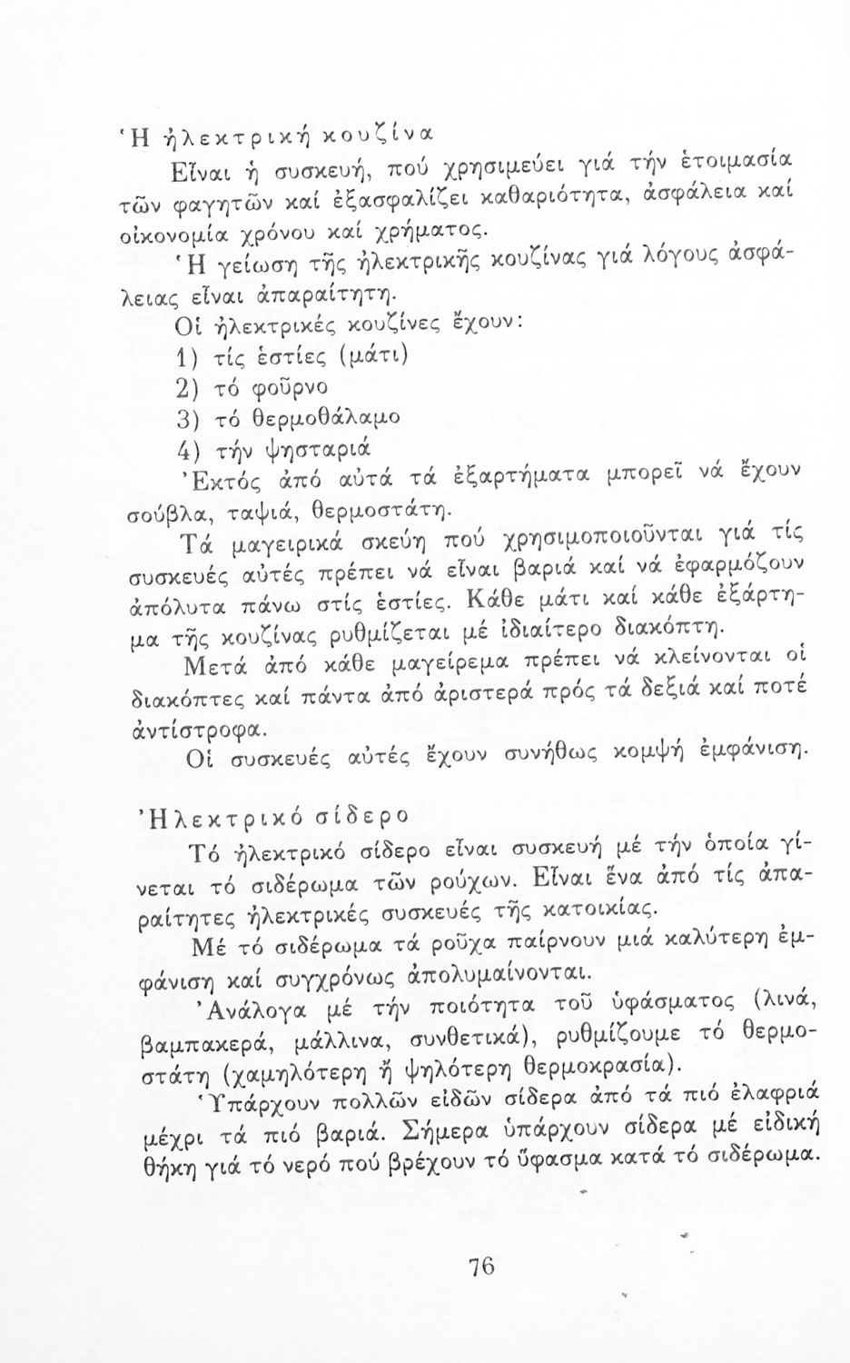 Σχολικό εγχειρίδιο Οικιακής Οικονομίας που εστιάζει στην υγιεινή της κατοικίας, τη διατροφή και την καλή συμπεριφορά.
