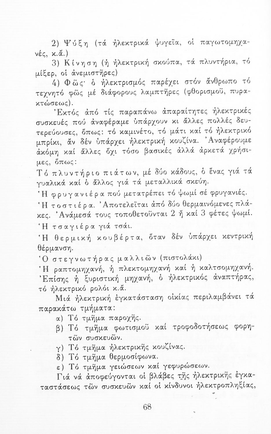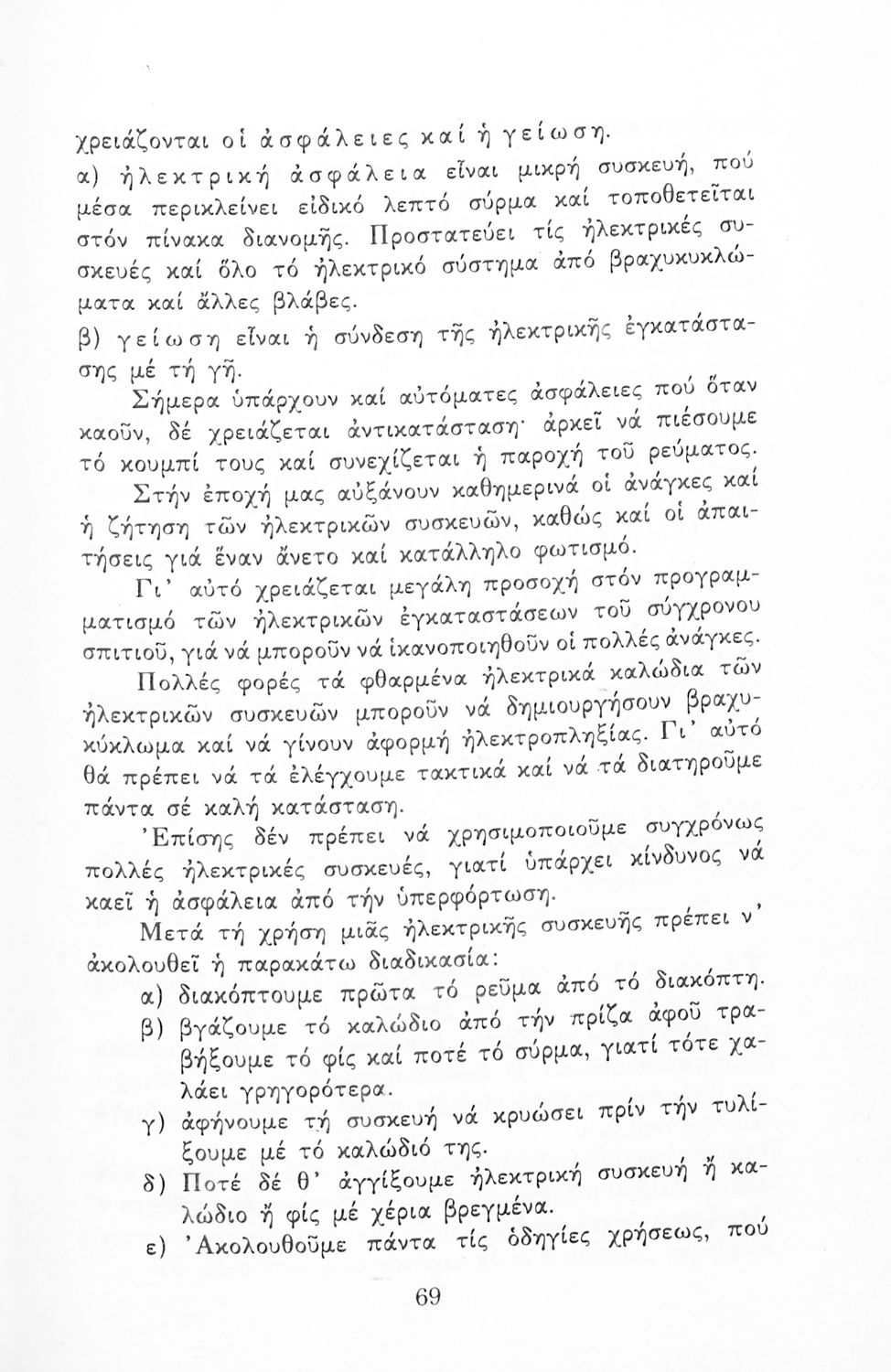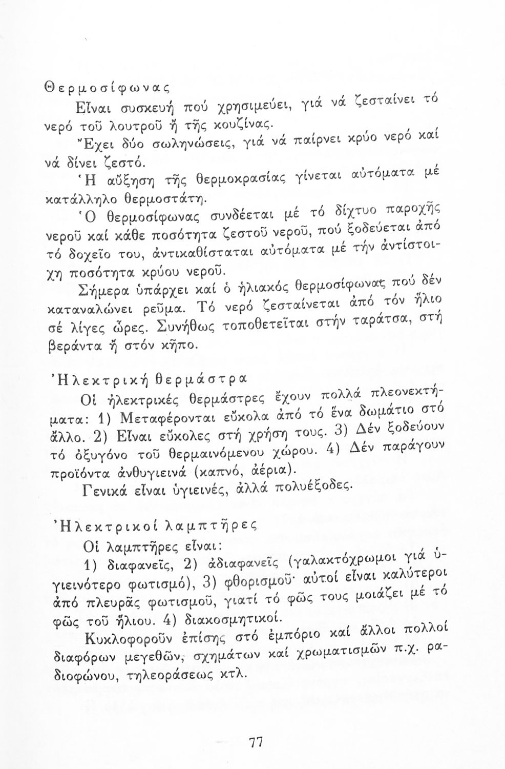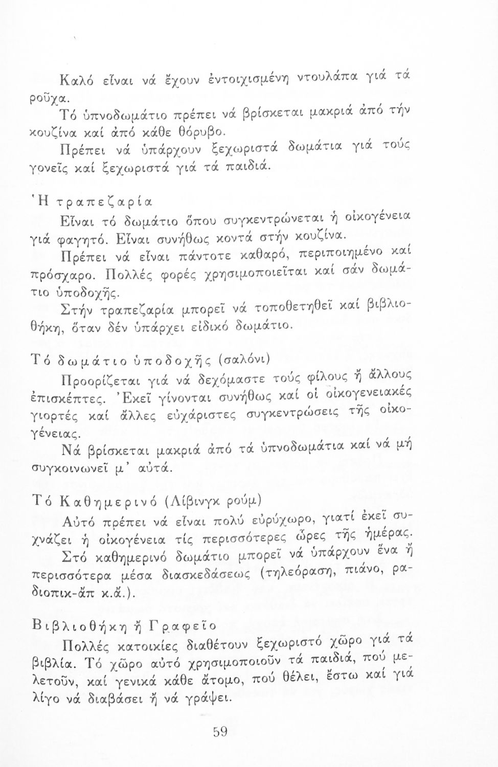 Σχολικό εγχειρίδιο Οικιακής Οικονομίας που εστιάζει στην υγιεινή της κατοικίας, τη διατροφή και την καλή συμπεριφορά.