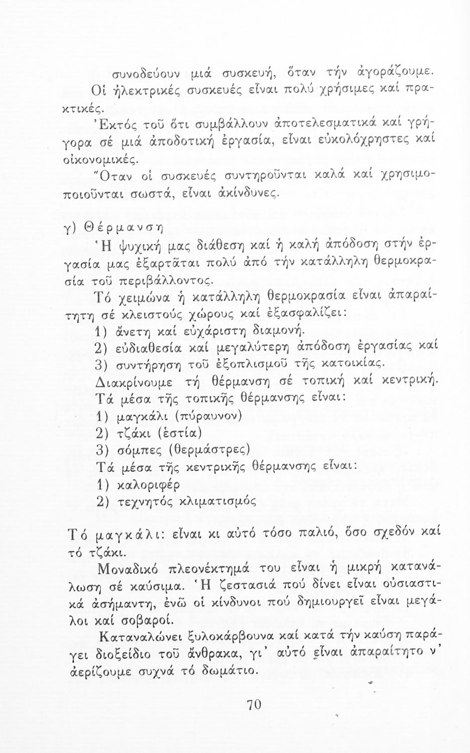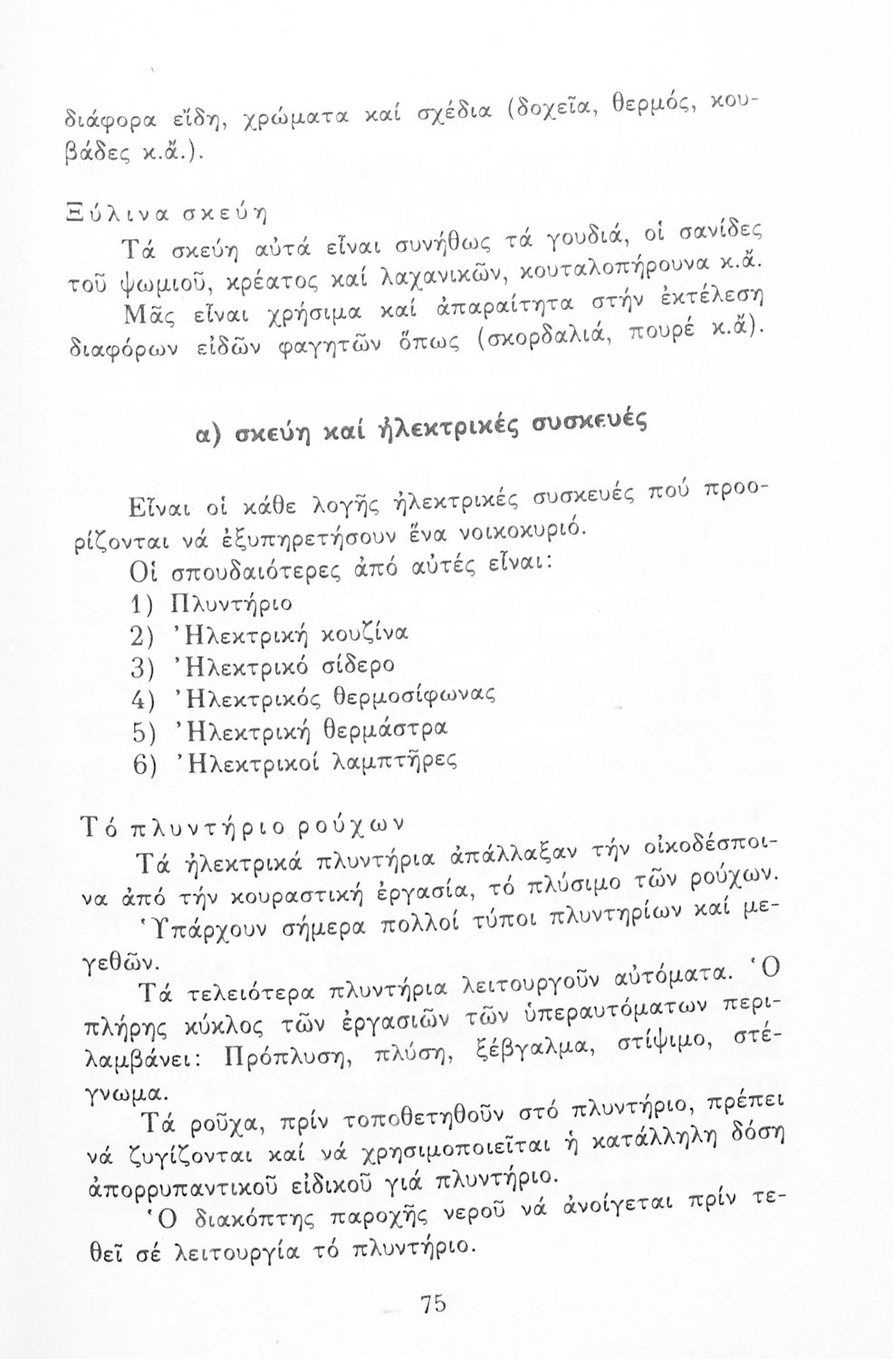 Σχολικό εγχειρίδιο Οικιακής Οικονομίας που εστιάζει στην υγιεινή και τις οικιακές εργασίες.