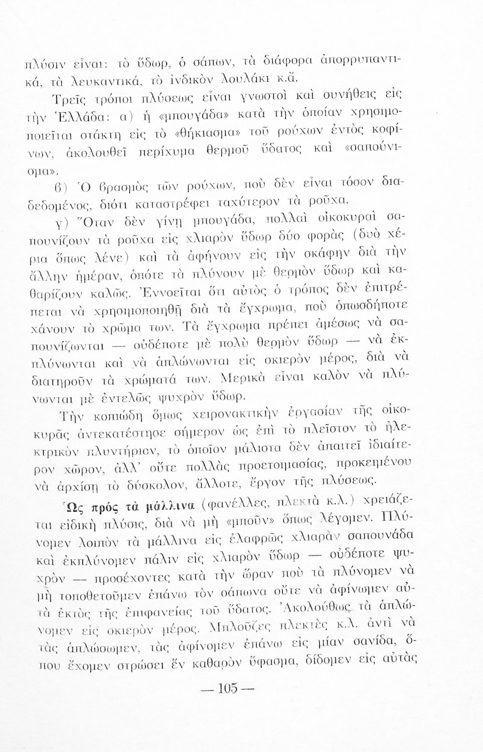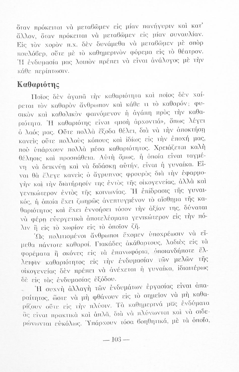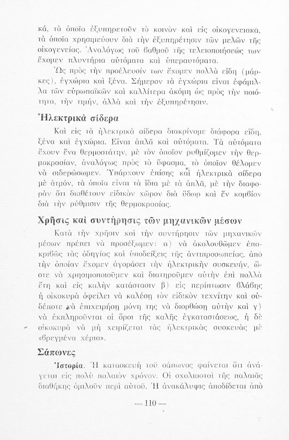 Παρουσίαση περιεχομένου: Το σύγγραμμα ήταν σχολικό εγχειρίδιο για το μάθημα της Οικιακής Οικονομίας στο Γυμνάσιο. Περιέχει πληροφορίες σχετικά με την ένδυση, την υφαντουργίας, τη βαμβακοβιομηχανία και την ανάπτυξη του κλάδου στην Ελλάδα. Επίσης, αναφέρει πληροφορίες για τα φυσικά και συνθετικά υλικά που χρησιμοποιούνται στη βιοτεχνία.