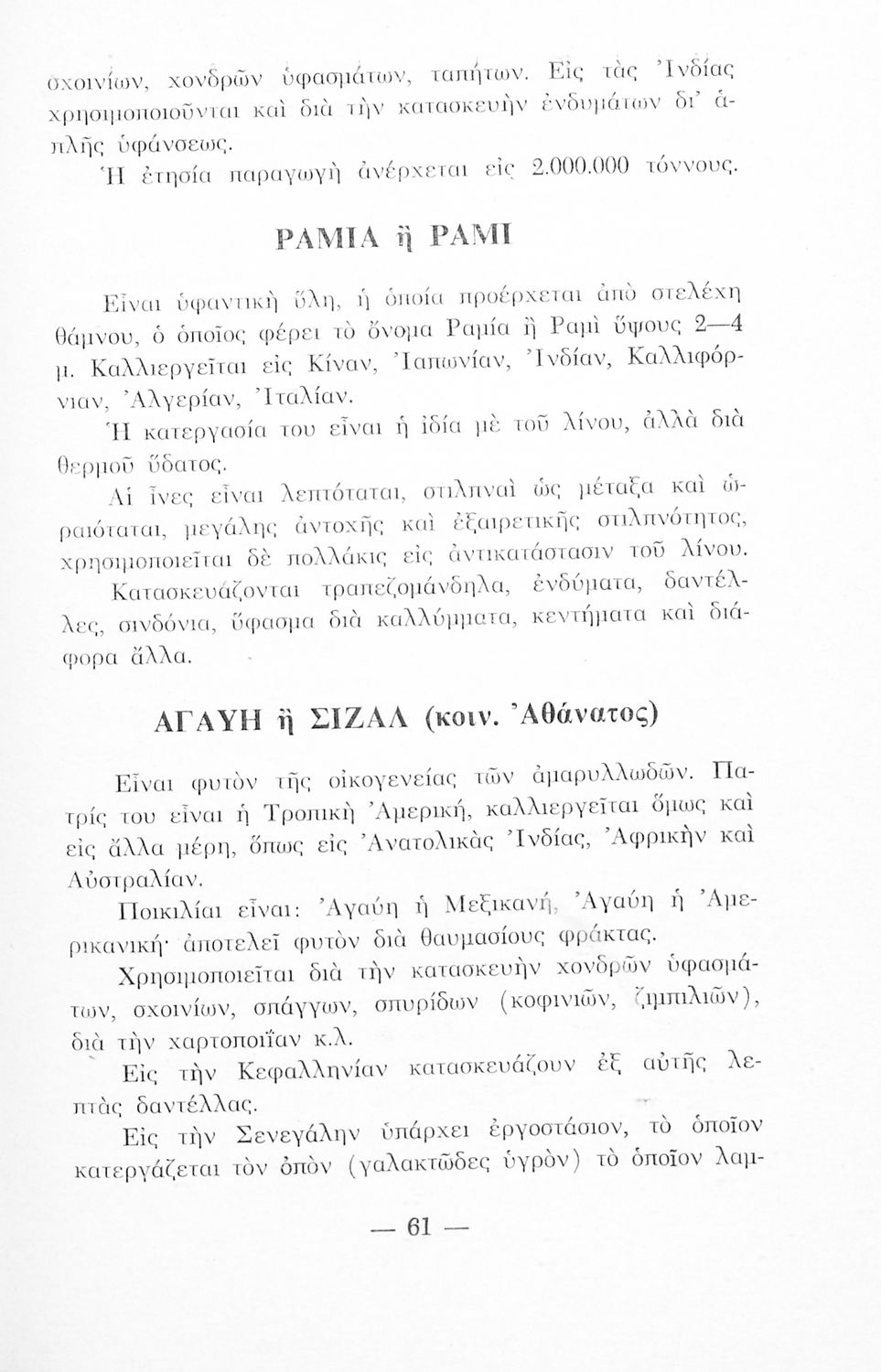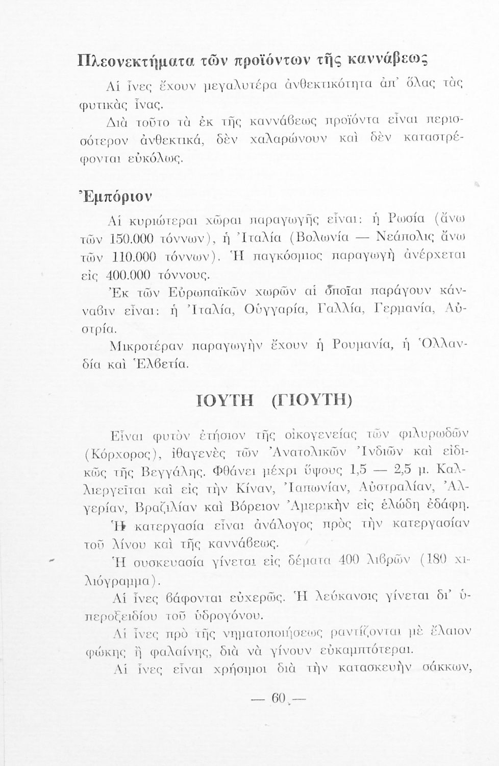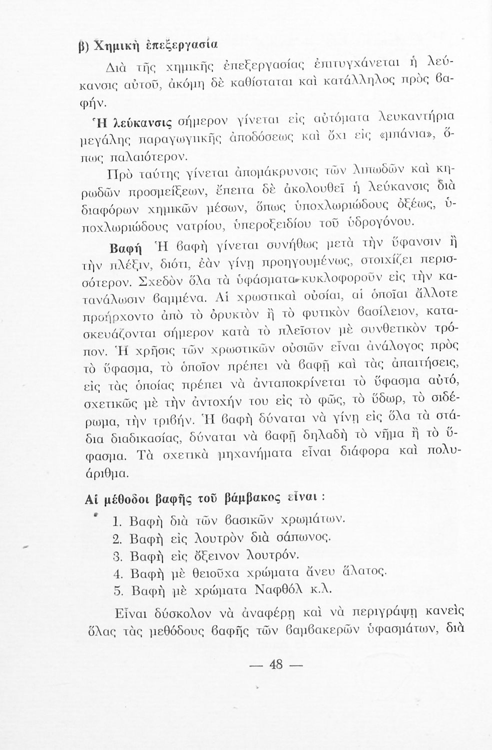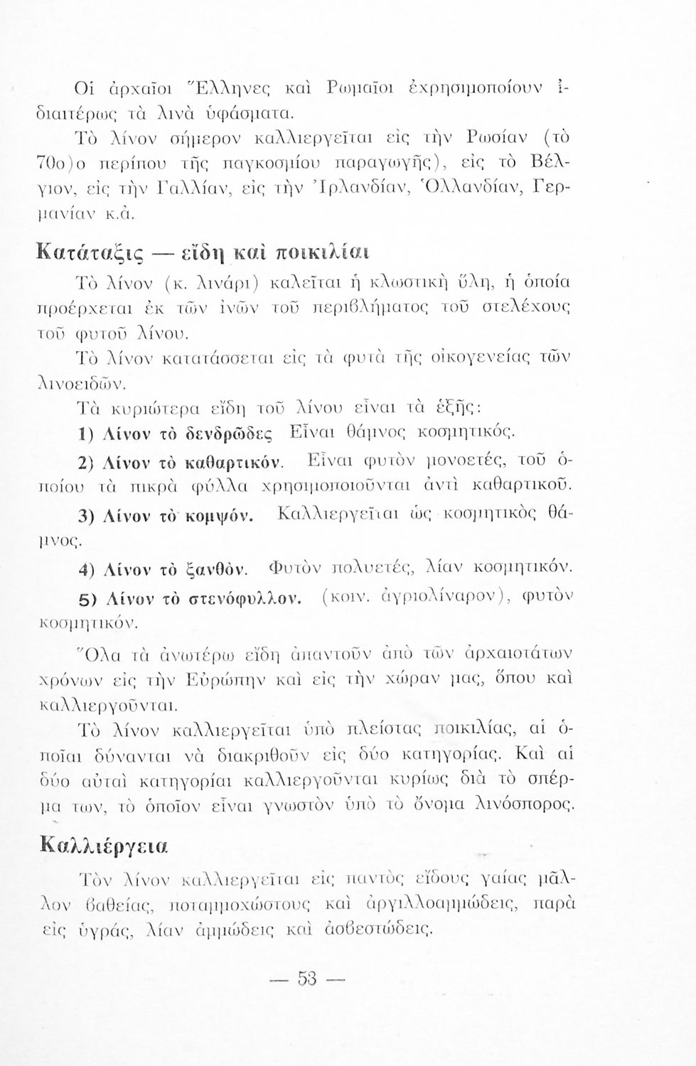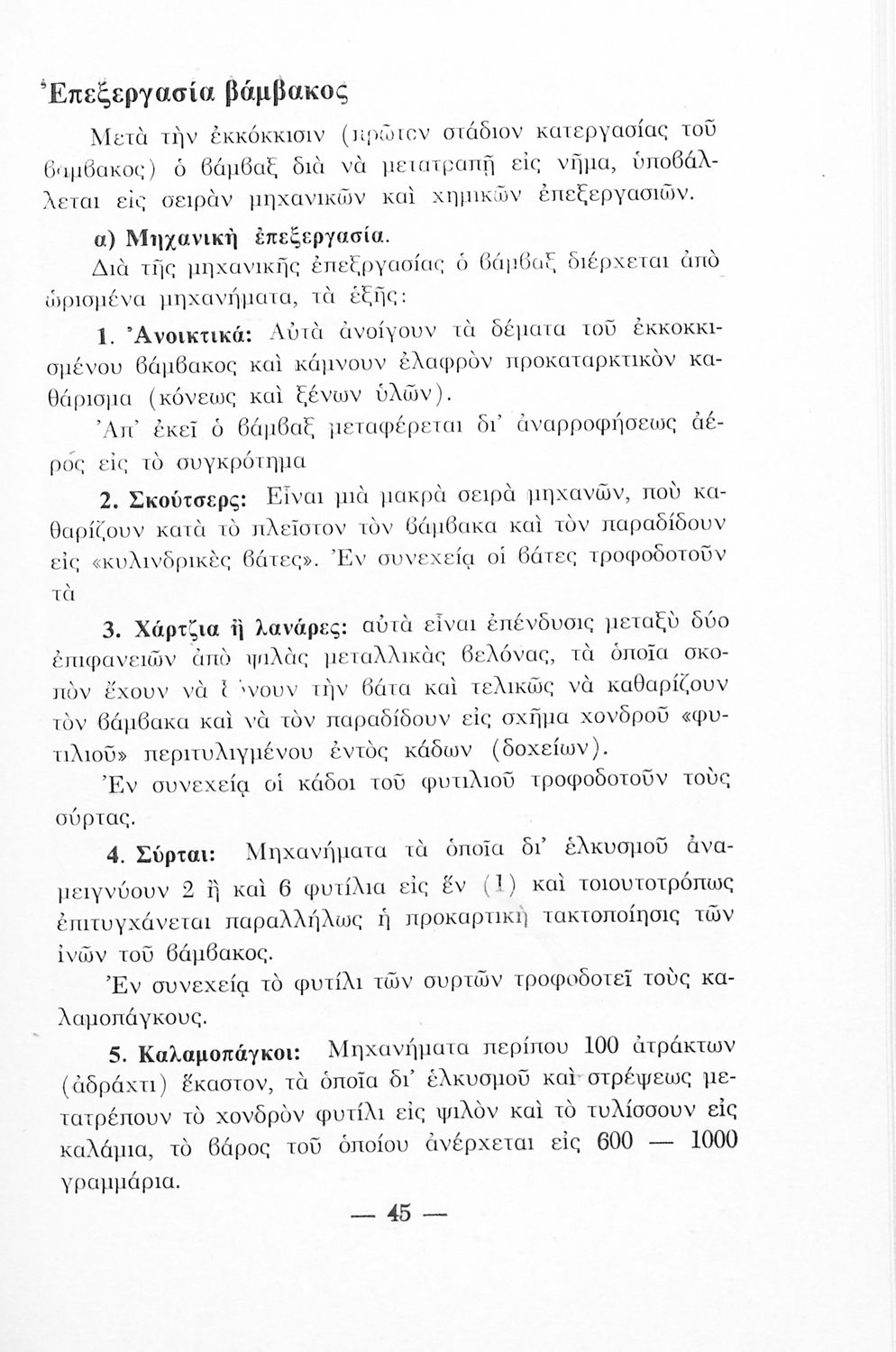 Βαθμίδα εκπαίδευσης: Δευτεροβάθμια Τάξη: Α' Γυμνασίου Μάθημα: Οικιακή Οικονομία Γλώσσα: Απλή καθαρεύουσα Παρουσίαση περιεχομένου: Το σύγγραμμα ήταν σχολικό εγχειρίδιο για το μάθημα της Οικιακής Οικονομίας στο Γυμνάσιο. Περιέχει πληροφορίες σχετικά με την ένδυση, την υφαντουργίας, τη βαμβακοβιομηχανία και την ανάπτυξη του κλάδου στην Ελλάδα. Επίσης, αναφέρει πληροφορίες για τα φυσικά και συνθετικά υλικά που χρησιμοποιούνται στη βιοτεχνία. |