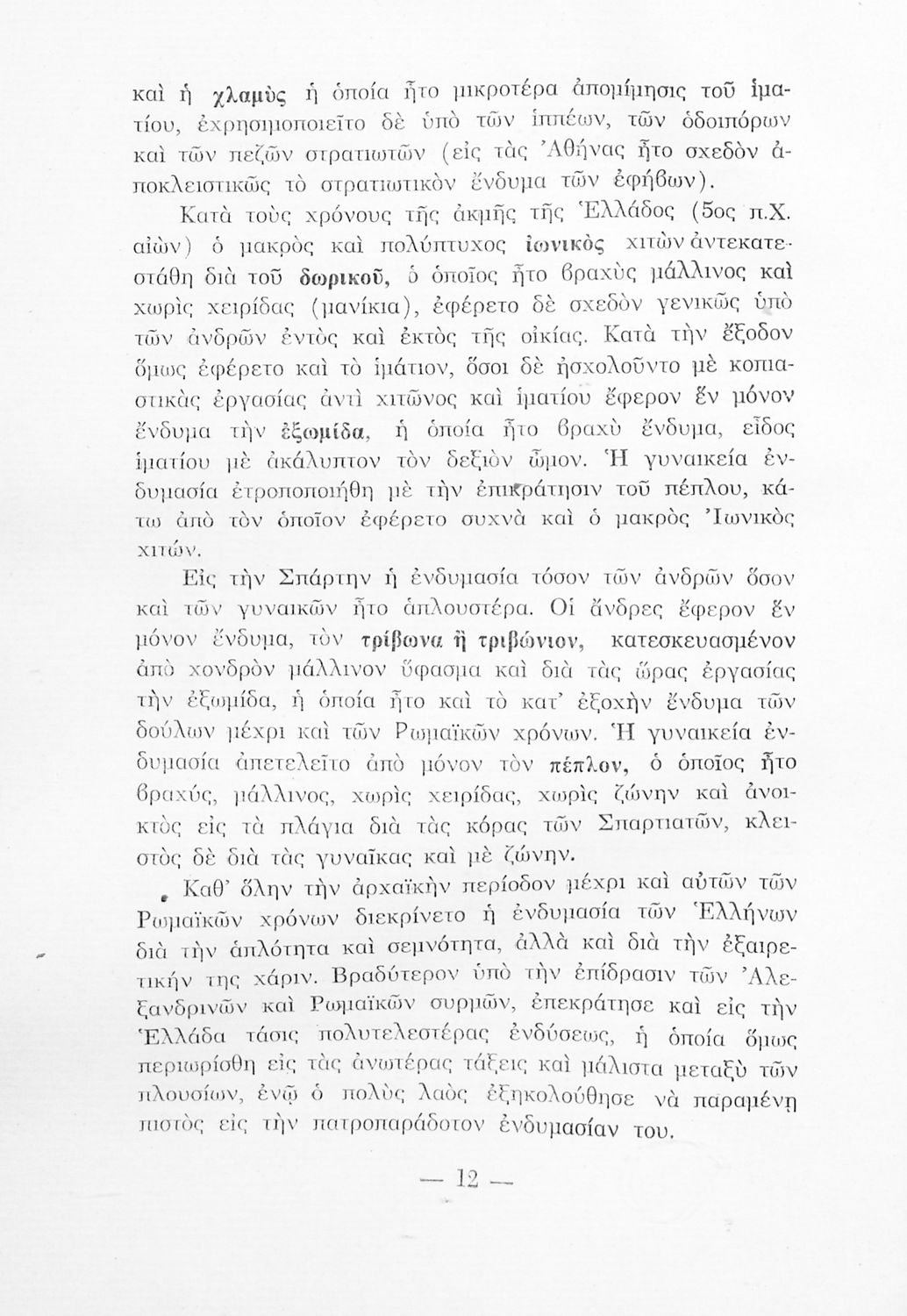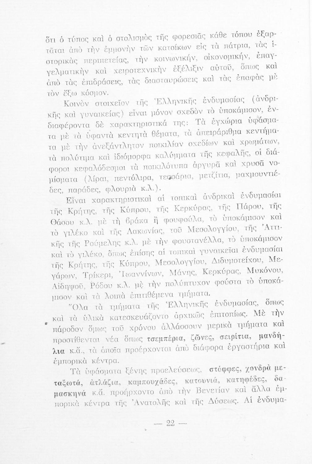 Βαθμίδα εκπαίδευσης: Δευτεροβάθμια Τάξη: Α' Γυμνασίου Μάθημα: Οικιακή Οικονομία Γλώσσα: Απλή καθαρεύουσα Παρουσίαση περιεχομένου: Το σύγγραμμα ήταν σχολικό εγχειρίδιο για το μάθημα της Οικιακής Οικονομίας στο Γυμνάσιο. Περιέχει πληροφορίες σχετικά με την ένδυση, την υφαντουργίας, τη βαμβακοβιομηχανία και την ανάπτυξη του κλάδου στην Ελλάδα. Επίσης, αναφέρει πληροφορίες για τα φυσικά και συνθετικά υλικά που χρησιμοποιούνται στη βιοτεχνία. |