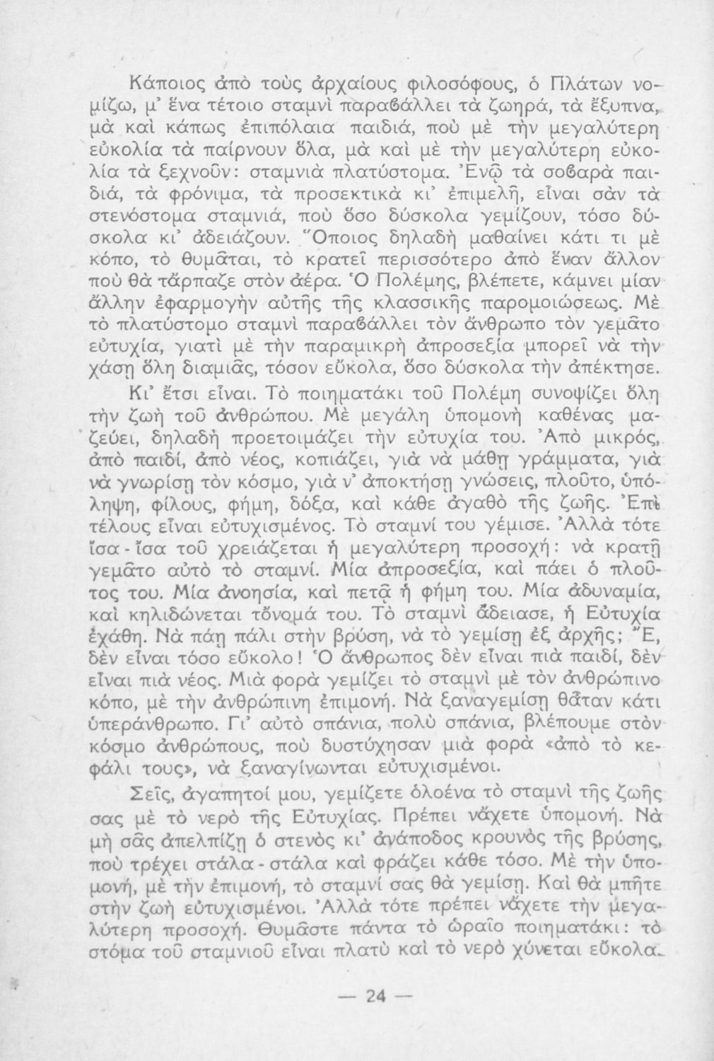 Σχολικό εγχειρίδιο για τους μαθητές του Α΄ και Β΄ εξαμήνου της Σιβιτανιδείου Σχολής για το μάθημα των Νέων Ελληνικών. Περιέχει κείμενα πεζά και ποιήματα. Το βιβλίο αρχίζει με τον ύμνο της Σχολής.