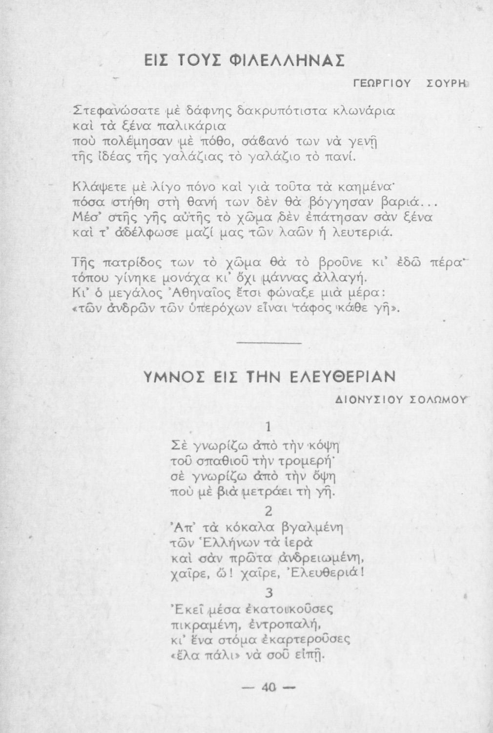 Σχολικό εγχειρίδιο Νέων Ελληνικών για τις Α΄ και Β΄ Λυκείου που περιέχει πεζά και ποιήματα Ελλήνων και ξένων συγγραφέων εμπνευσμένα από την σύγχρονη ελληνική ιστορία, τη θρησκευτική παράδοση και την ελληνική ...