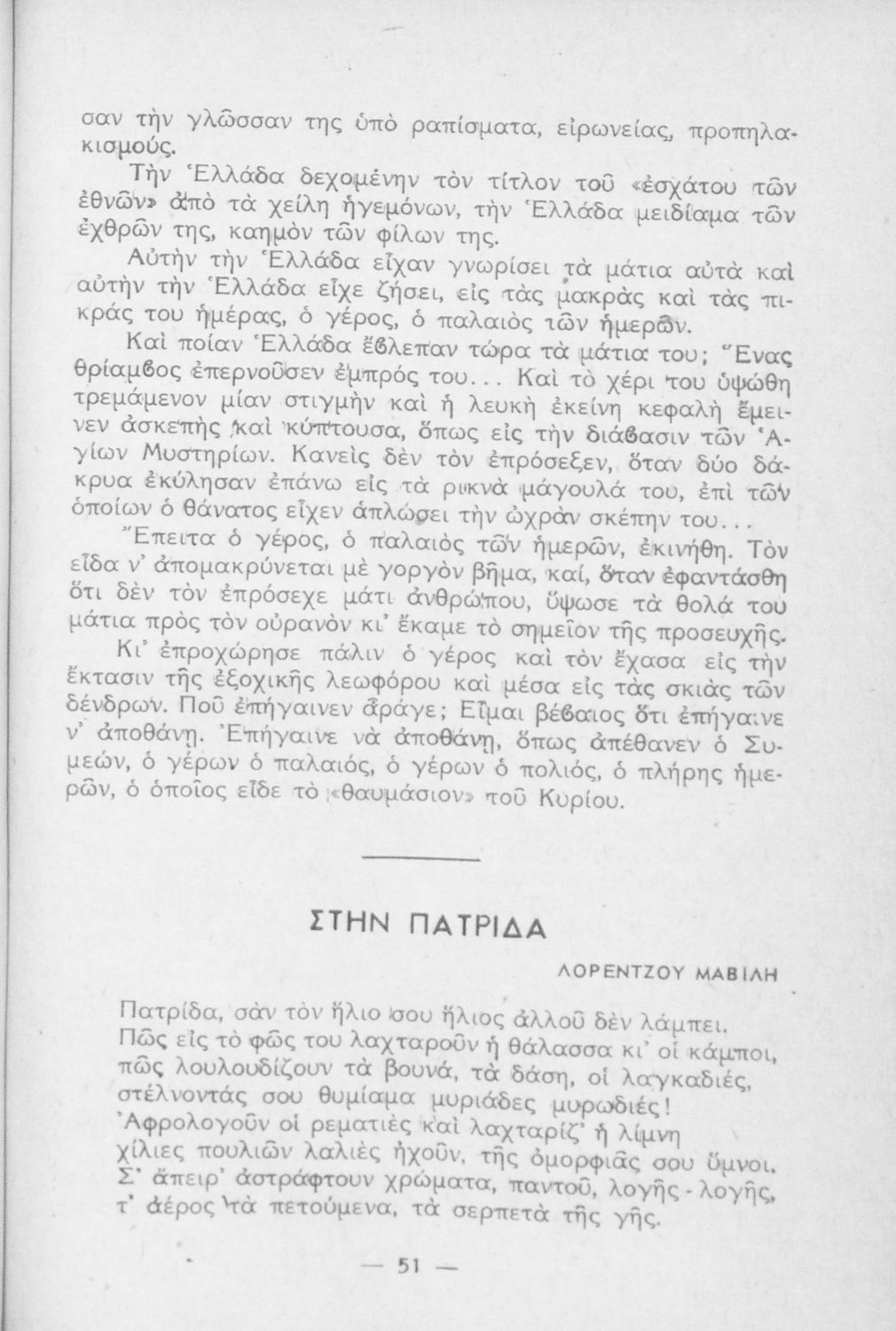 Σχετιζόμενοι όροι:  Παπαντωνίου, Πολέμης, Παλαμάς, Βιλαράς