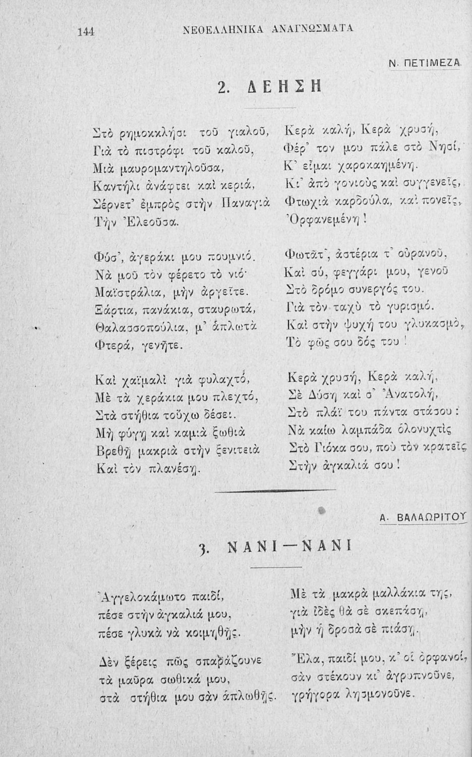 Σχετιζόμενοι όροι:  Πολέμης, Δροσίνης, Παλαμάς, Βικέλας