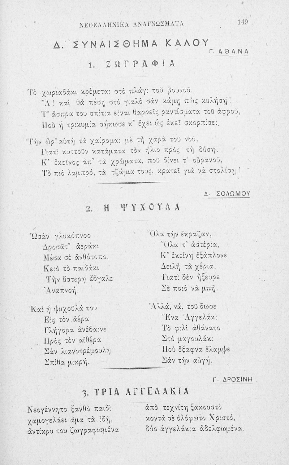 Σχετιζόμενοι όροι:  Κρυστάλλης, Παλαμάς, Σολωμός, Δροσίνης