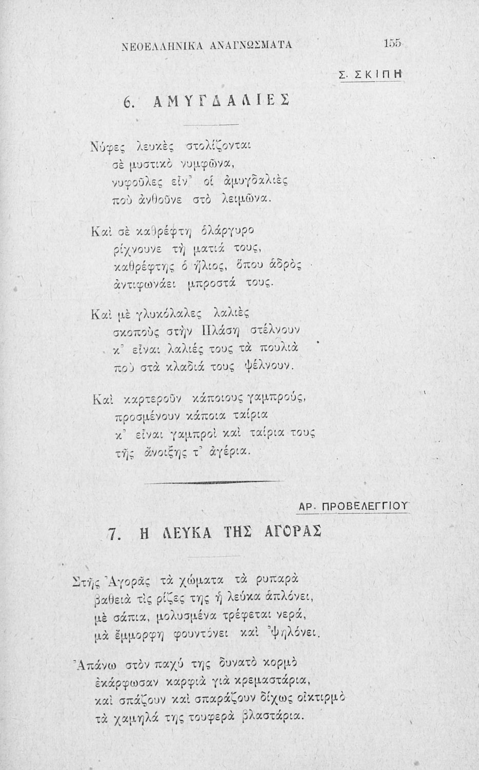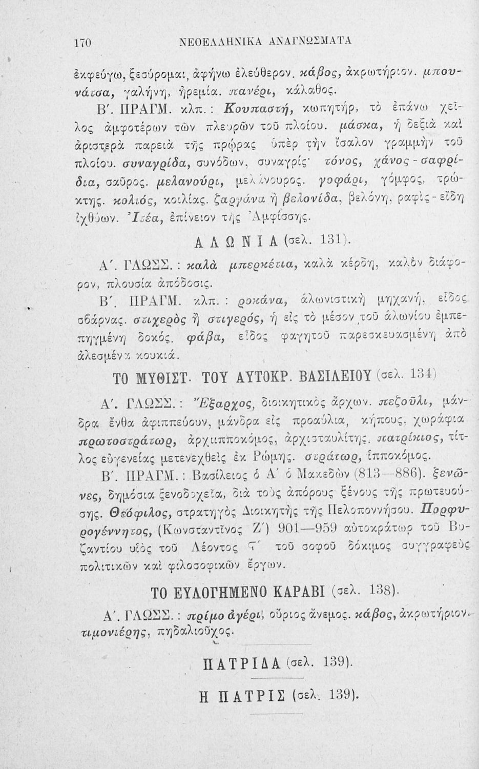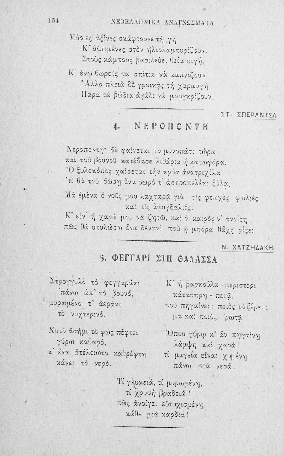 Σχολικό εγχειρίδιο Νέων Ελληνικών Β' Ελληνικού Σχολείου που περιέχει πεζά και ποιήματα Ελλήνων συγγραφέων και δημοτικά τραγούδια εμπνευσμένα από την σύγχρονη ελληνική ιστορία, τη βυζαντινή ιστορία, την οικογενειακή και θρησκευτική ζωή και τη φύση. Περιέχει και παράρτημα με βιογραφίες των συγγραφέων και λεξιλόγιο.