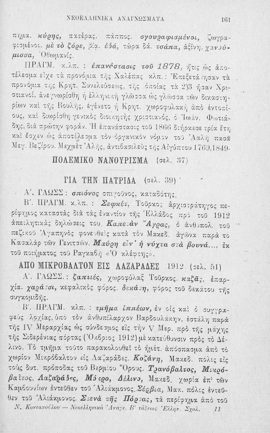 Τίτλος: Νεοελληνικά αναγνώσματα εγκριθέντα δια τους μαθητάς της Β' τάξεως των Ελληνικών Σχολείων