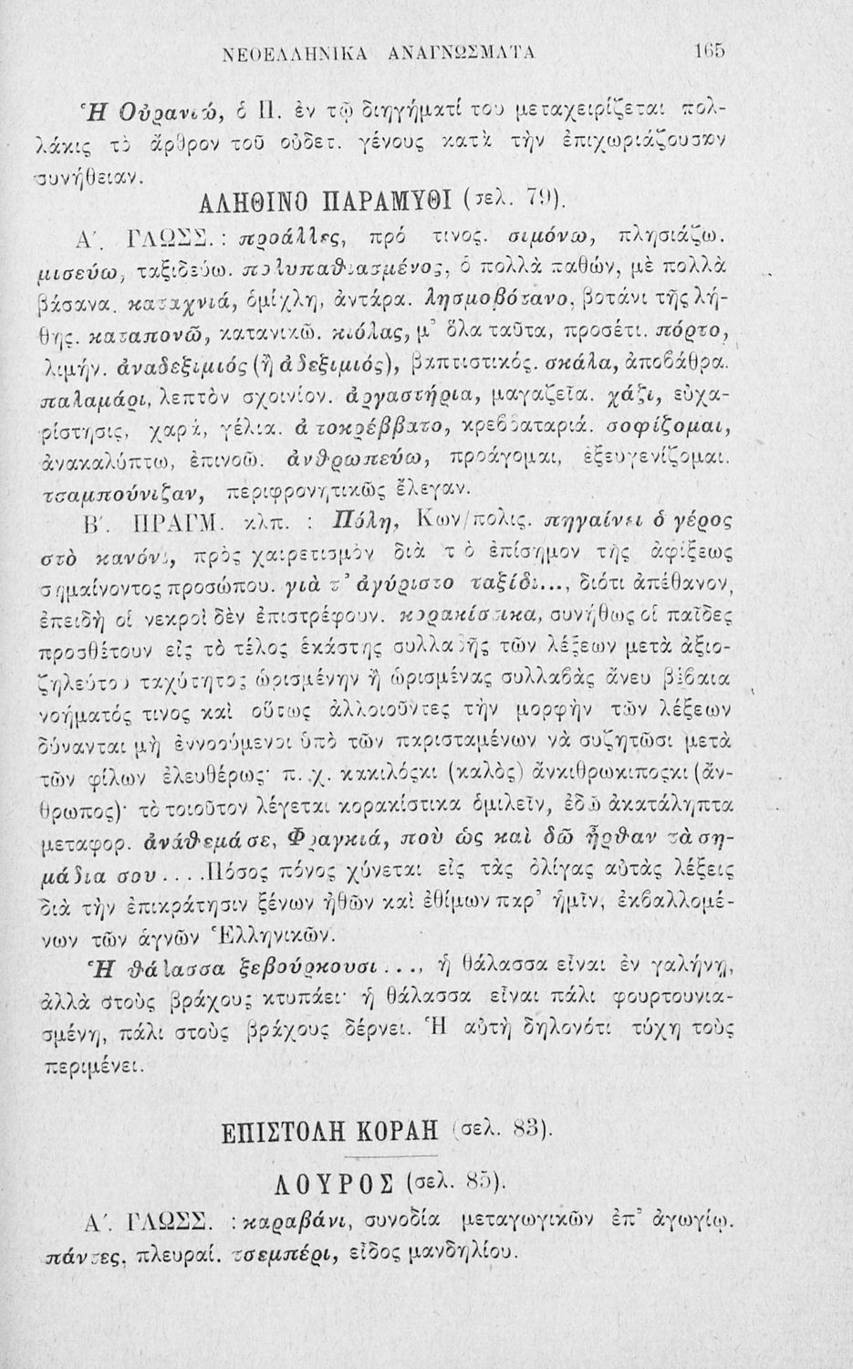 Γλώσσα: Δημοτική / Απλή Καθαρεύουσα