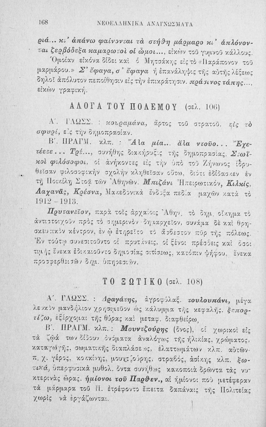 Σχολικό εγχειρίδιο Νέων Ελληνικών Β΄ Τετραταξίου Γυμνασίου και Γ΄ Αστικού Σχολείου Θηλέων που περιλαμβάνει ποιήματα και πεζά Ελλήνων συγγραφέων εμπνευσμένα από την σύγχρονη ελληνική ιστορία. Περιέχει και ...